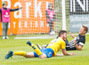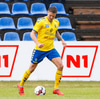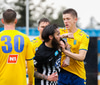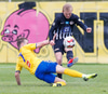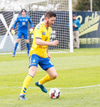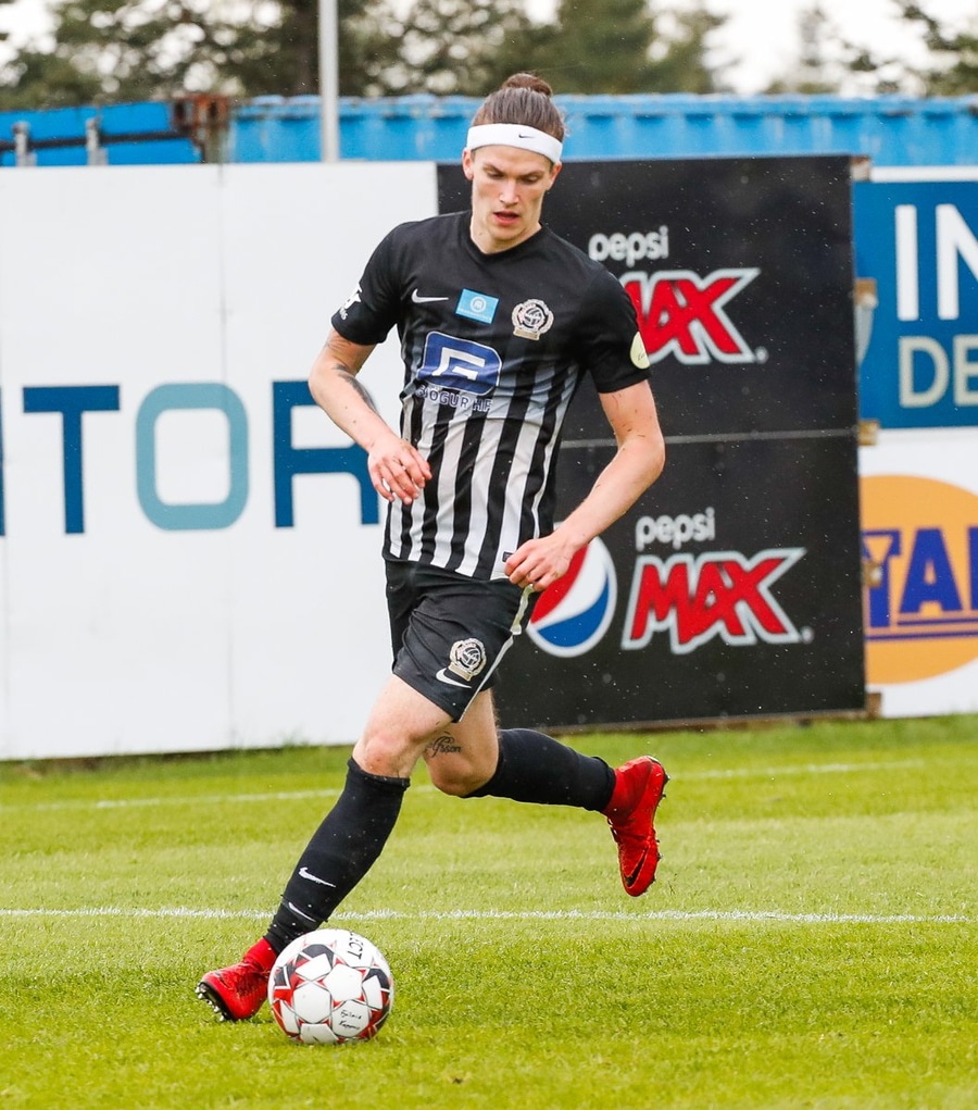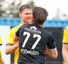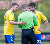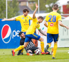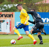 Gauti kemur alltof seint í tæklingu og fær verðskuldað gult!