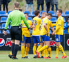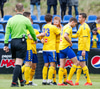 Fjölnismenn bruna upp í sókn og enginn sparkaði boltanum útaf þó að Gunnar Örvar lægi eftir í teignum, Albert Brynjar leggur boltann út á Inga Kort sem klárar færið auðveldlega.