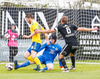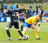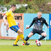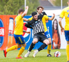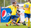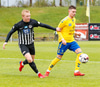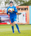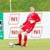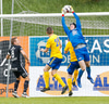Aron Elí grípur. - Er fljótur að koma boltanum í leik og Frosti er eldsnöggur, en missir boltann aðeins frá sér og Atli bjargar.