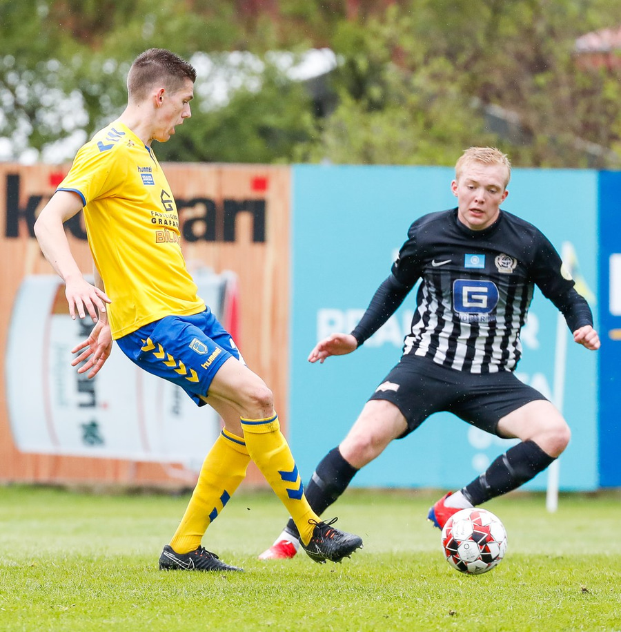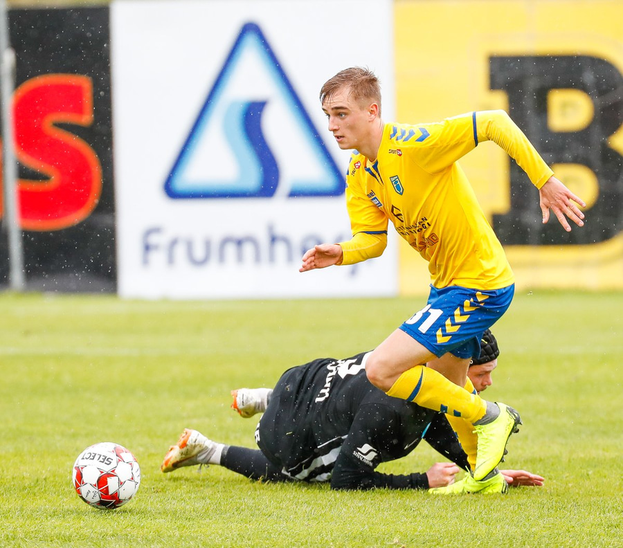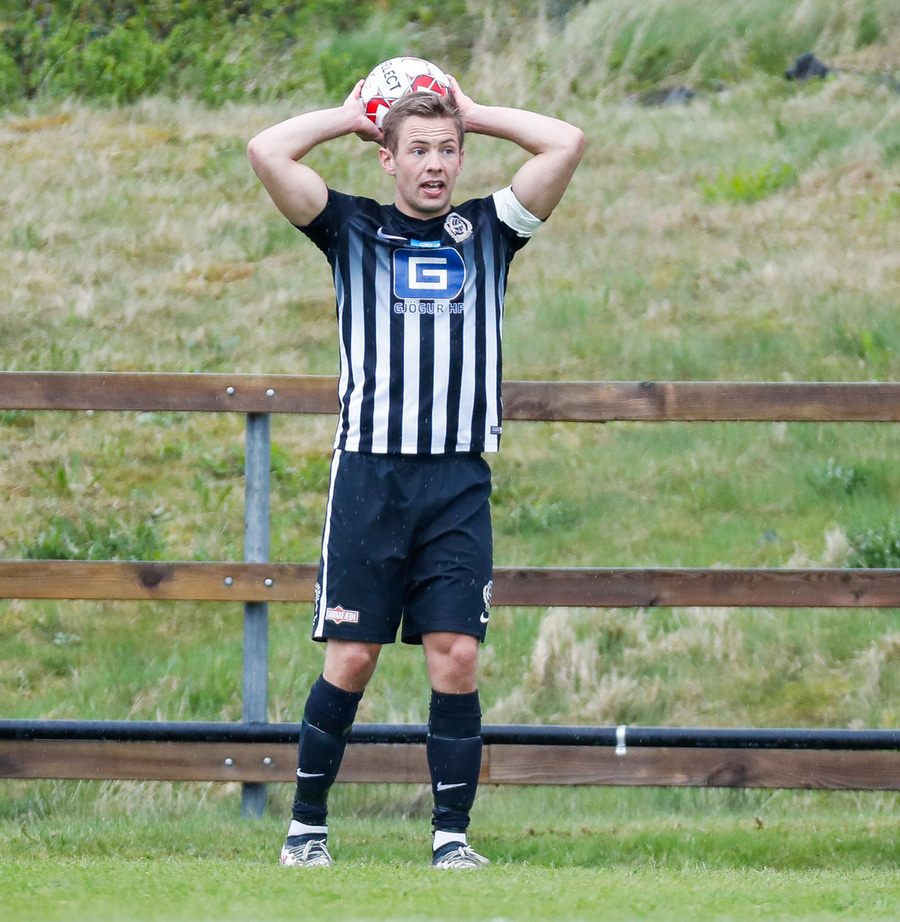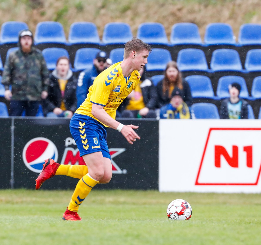 Arnór Breki með geggjaðan bolta inn á teiginn og Ström hefur hreinlega of mikinn tíma á boltanum þannig hann tekur móttöku og bíður og bíður þangað til að hann tekur skotið í varnarmann.