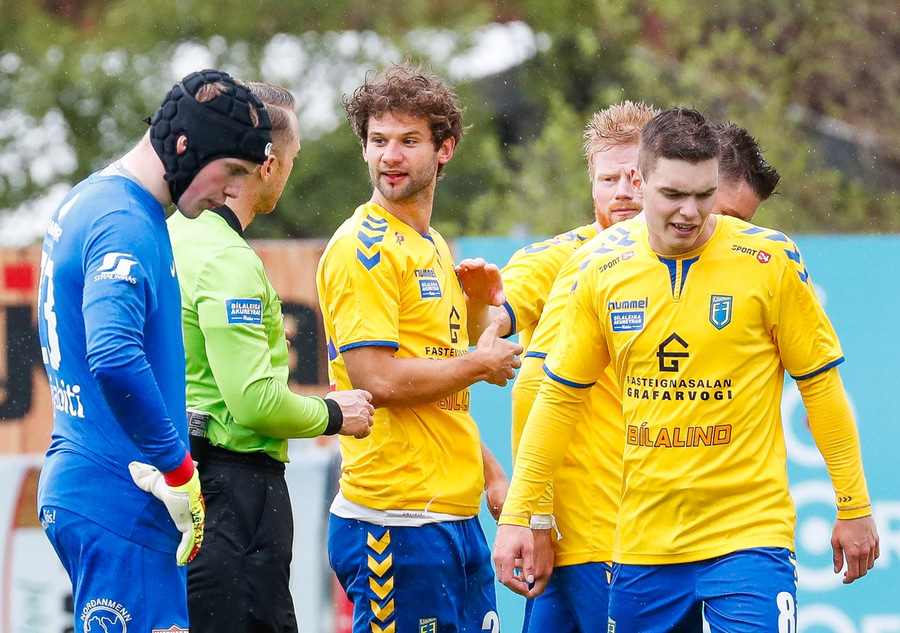 Jú, Einar Ingi áttar sig á þessu og gefur Spalla verðskuldað seinna gula.