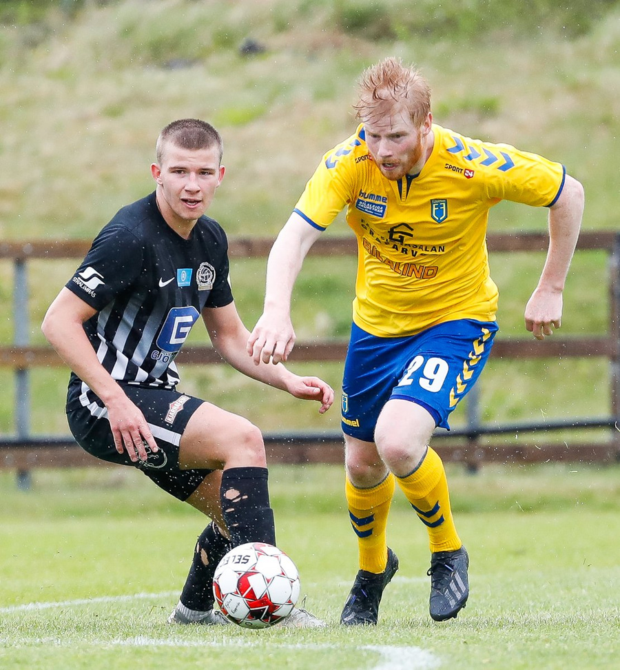 Hver haldiði? - Jú Elís renndi boltanum í gegn á Hans Viktor sem keyrir inn á teiginn en Viktor með geggjaða tæklingu og potar boltanum í horn.
