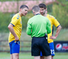 Sigurpáll brýtur á Magnamanni á miðjunni og á að mínu mati klárlega að fá seinna gula og Magnamenn brjálast við dómarann og Aron Elí hleypur úr markinu og fær spjald að launum.