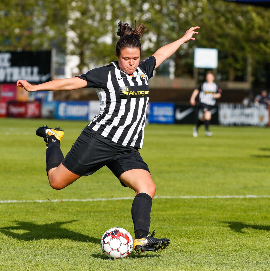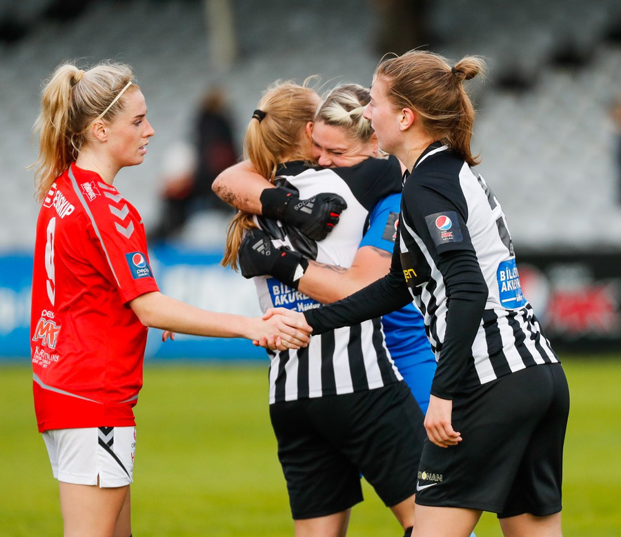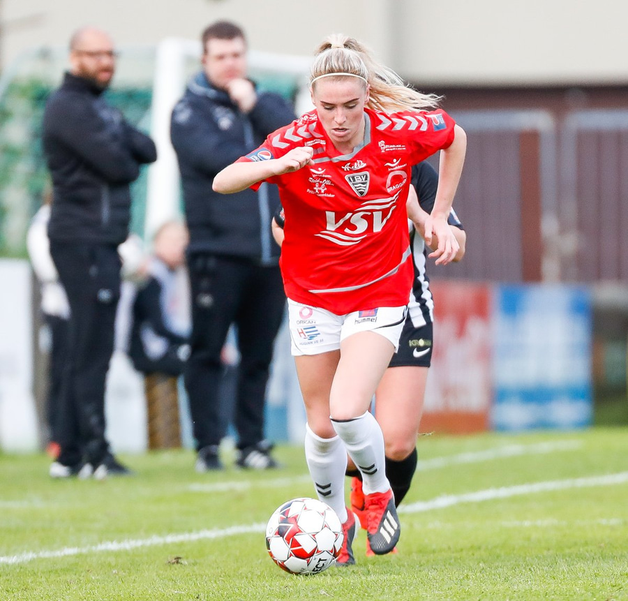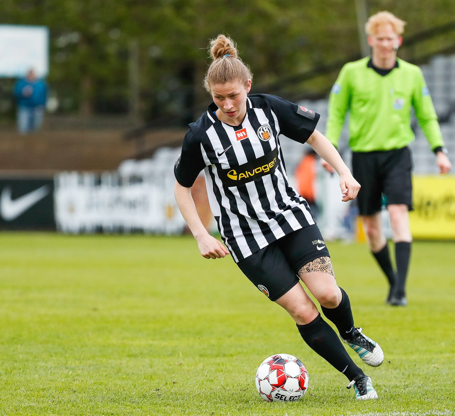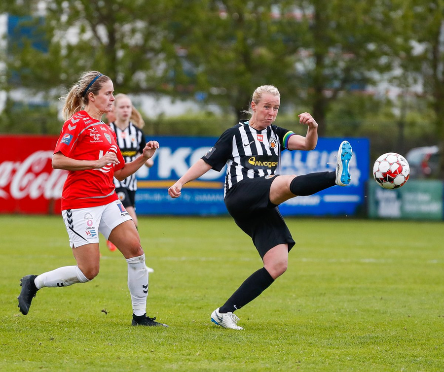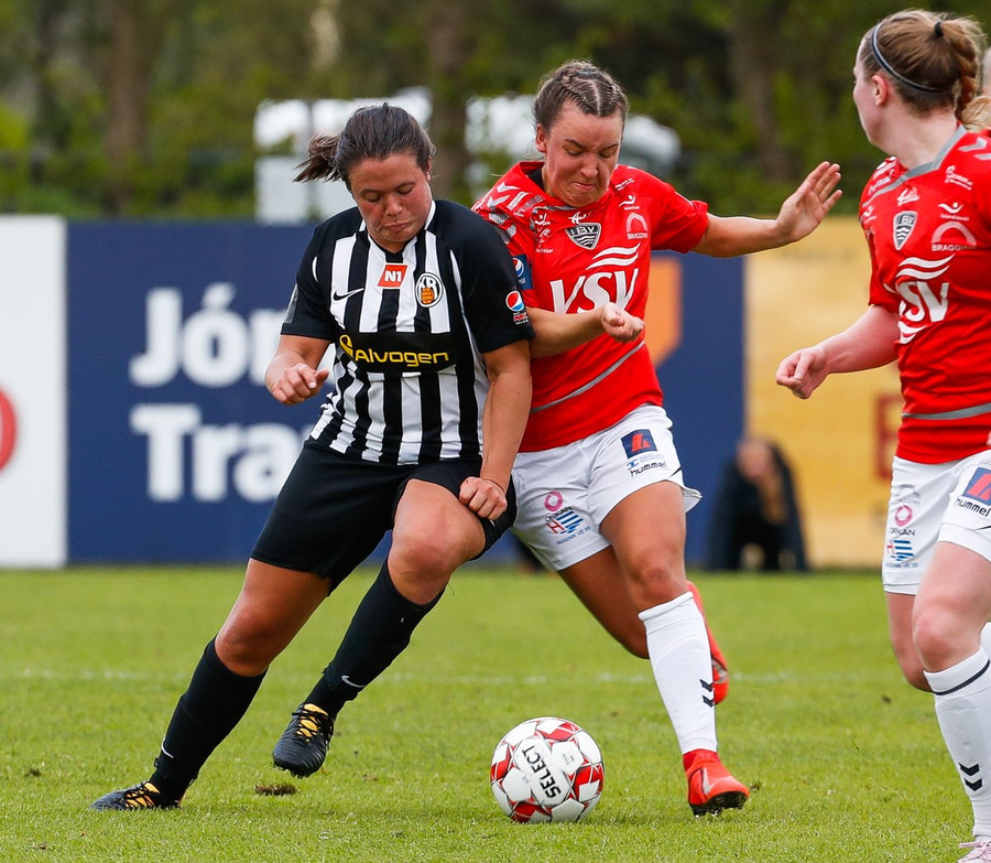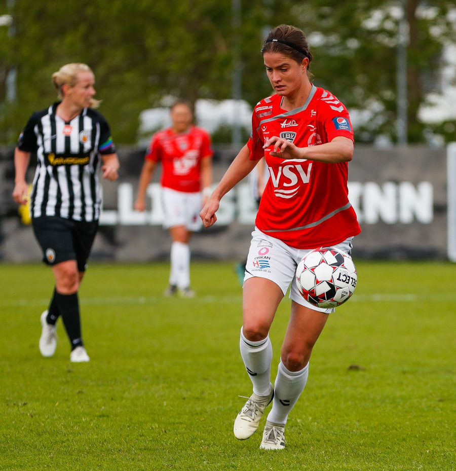Enn sækja gestirnir en Caroline dæmd rangstæð. Hún er búin að vera að spila í miðverðinum í dag en er komin ansi framarlega.