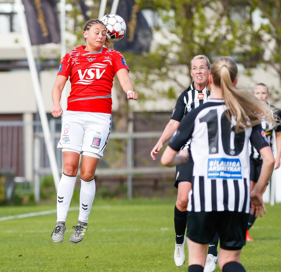 Ásdís með langan bolta á fjær en engin mætt þar.