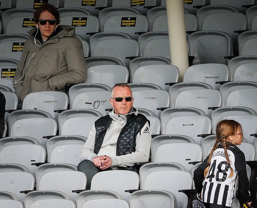Áhorfendur eru hægt og rólega að koma sér fyrir í stúkunni.