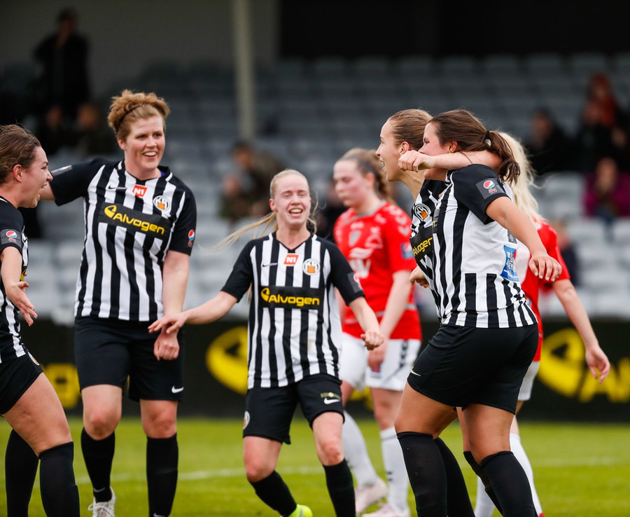 Þetta er farið af stað! Heimakonur hefja leik.