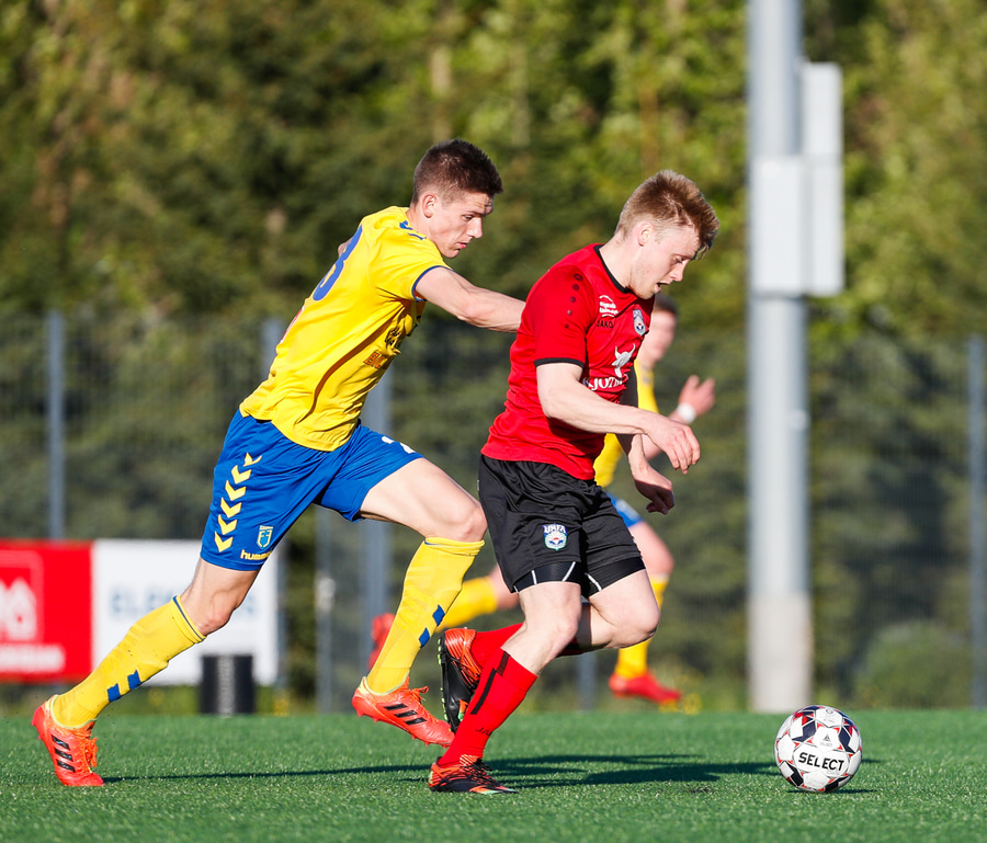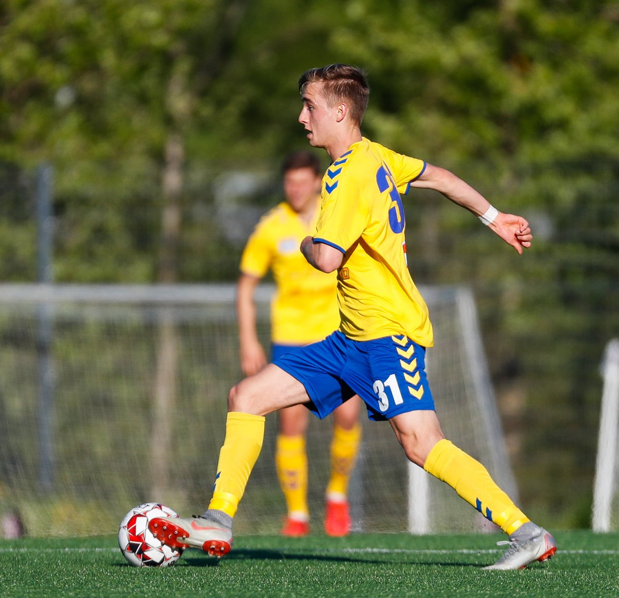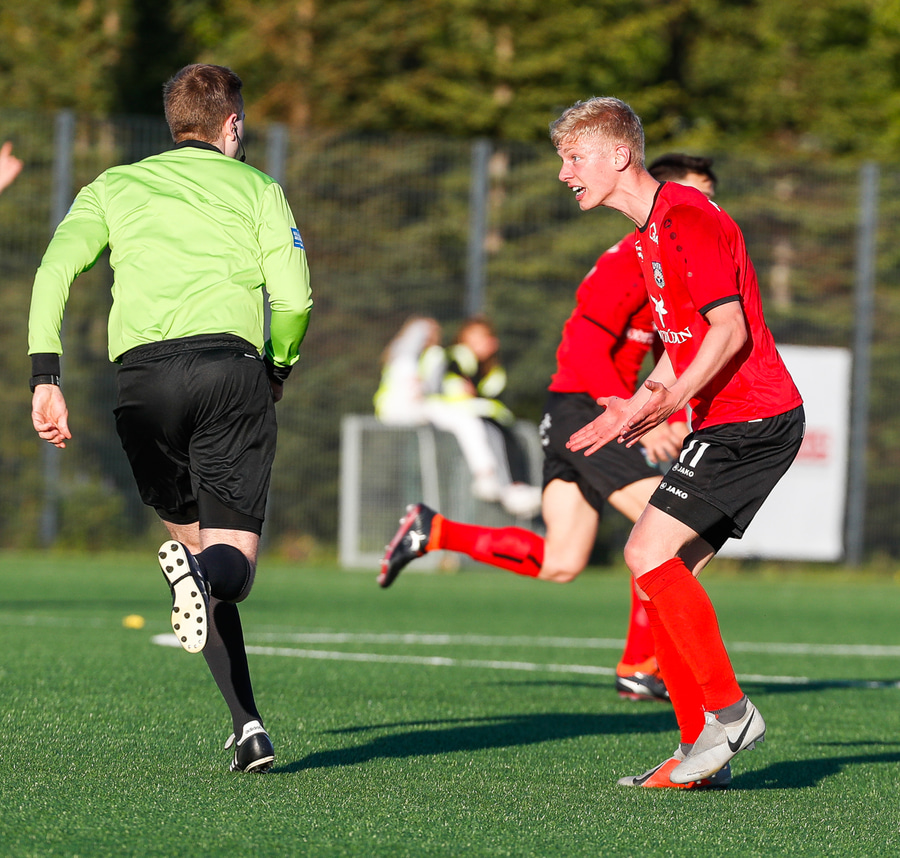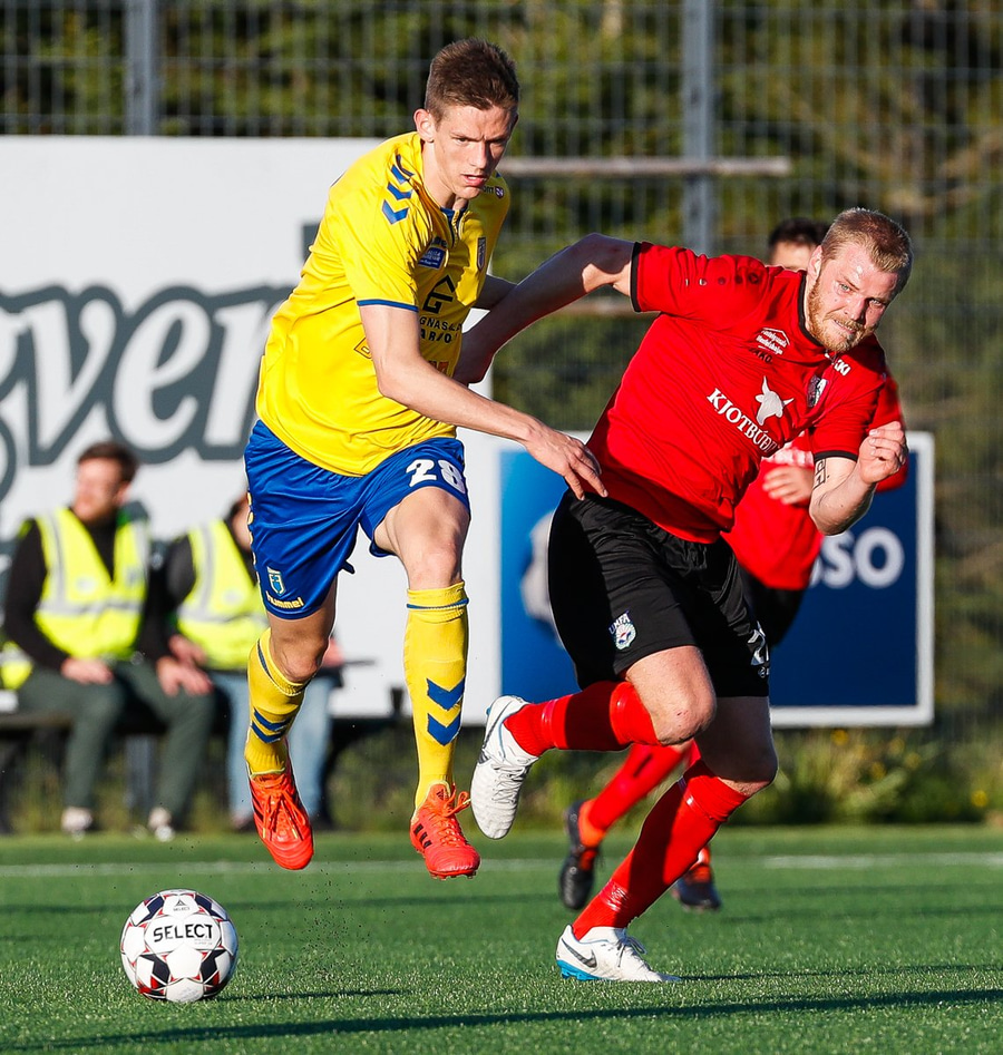 Kristófer fær hann í gegn frá Alberti og er í mjög þröngu færi. Setur hann beint á Trausta og boltinn lekur inn. Trausti hefði eflaust viljað gera betur þarna.