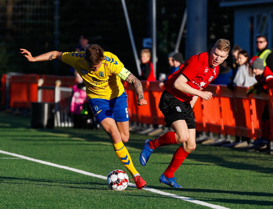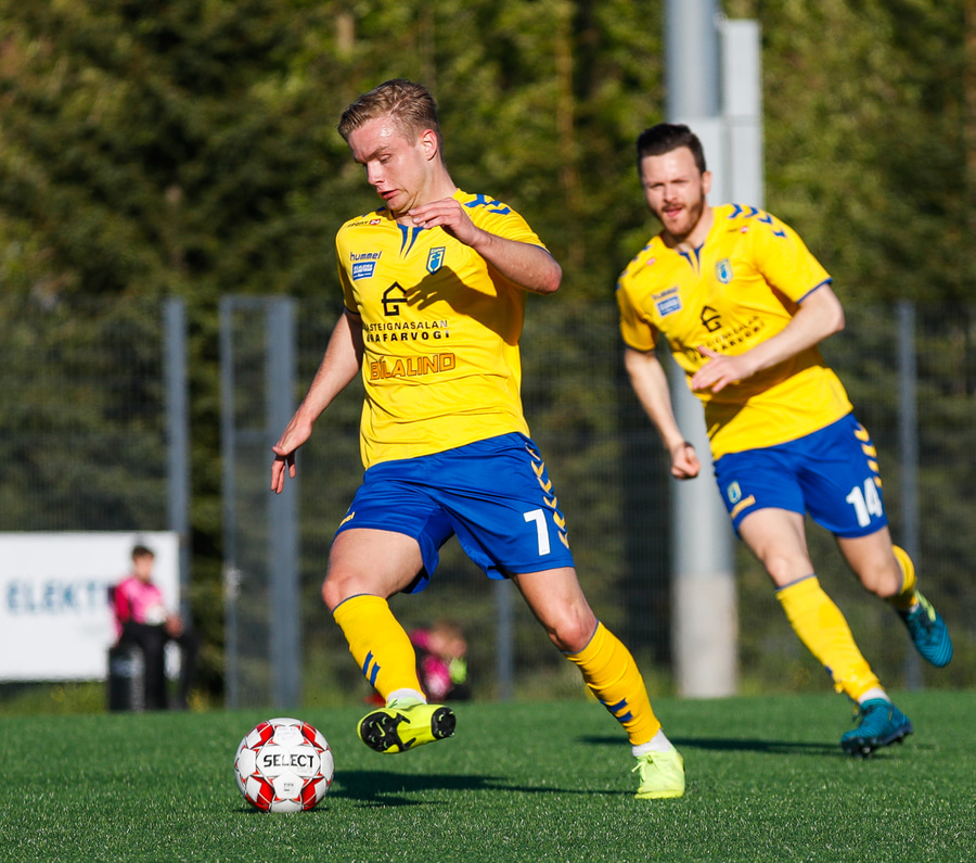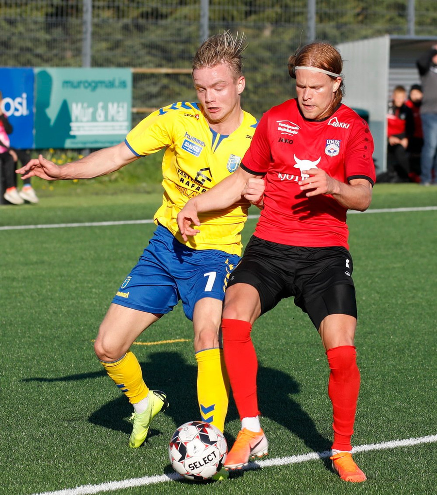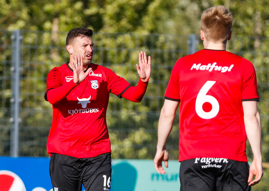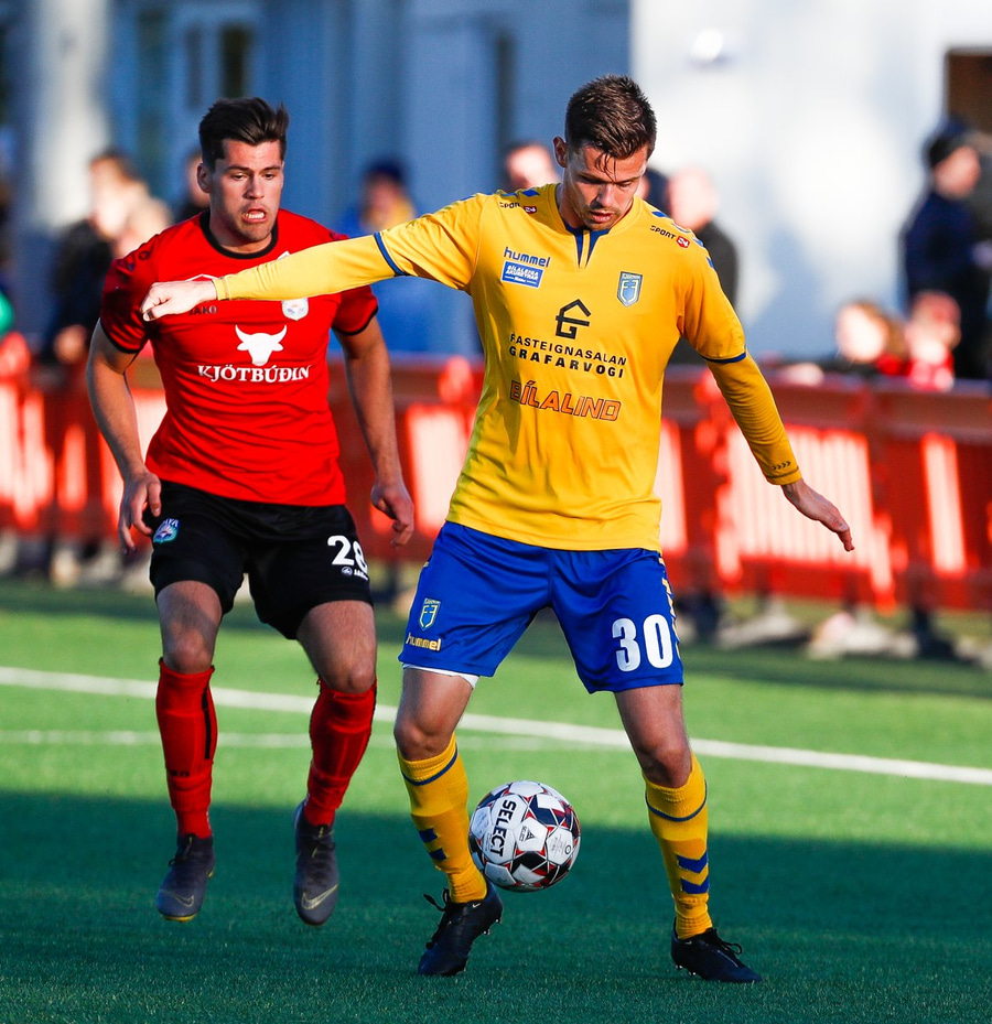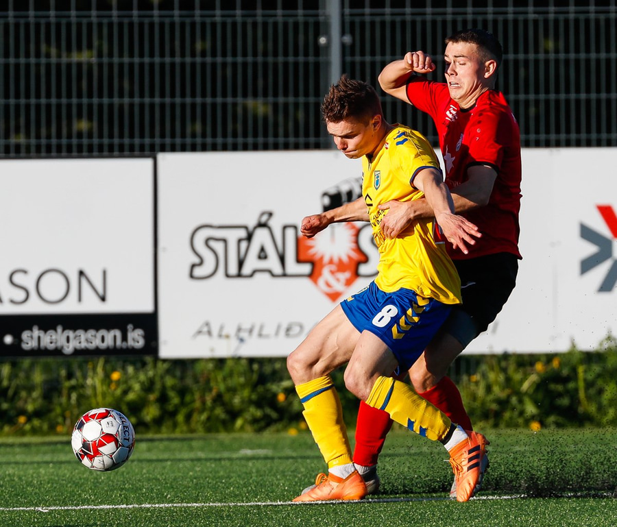 Jason með flottan sprett. Keyrir upp miðjuna, fer illa með Hans Viktor, finnur Andra Frey í gegn og hann á skot sem Atli Gunnar ver út í teig en nær svo að handsama.