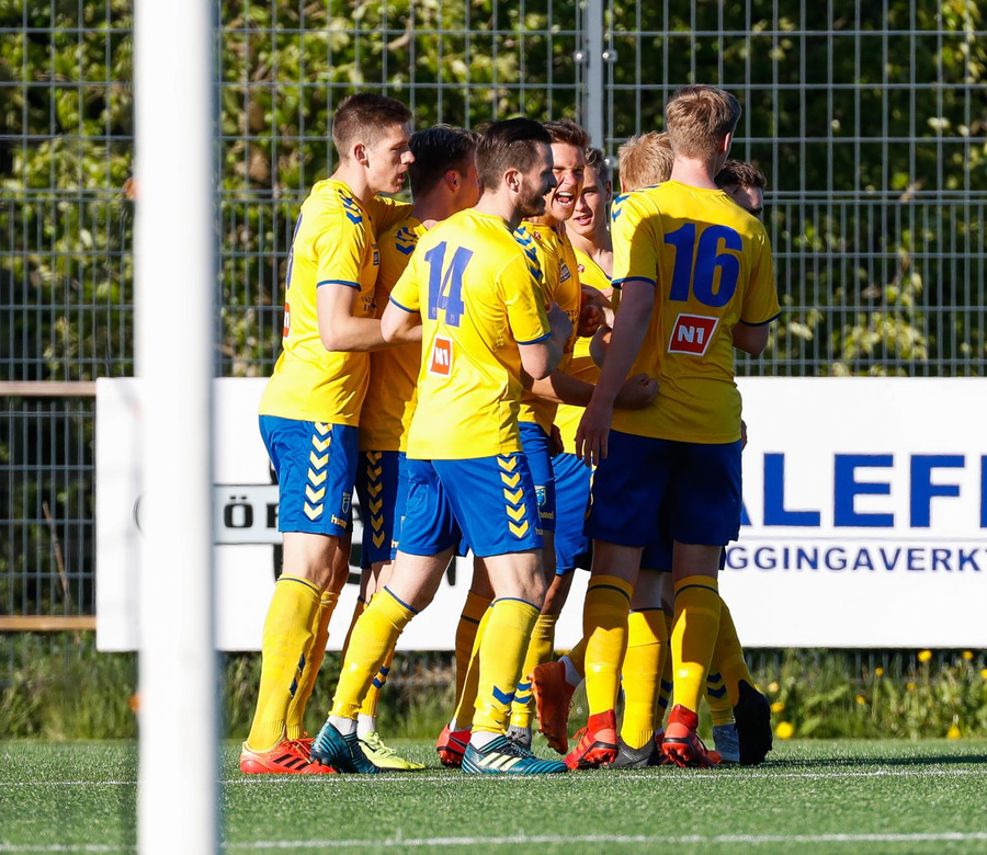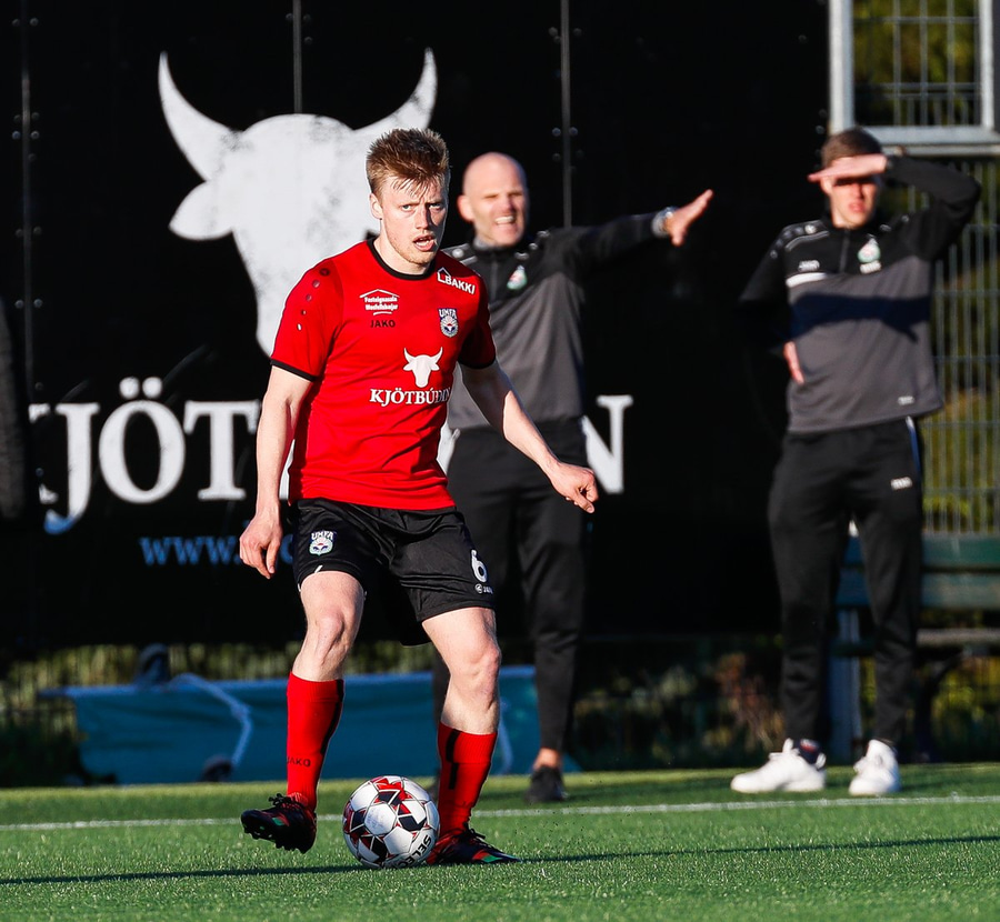 ÉG VAR VARLA BÚINN AÐ SLEPPA ORÐINU! HEIMAMENN JAFNA! Jason fær boltann úti á hægri og fer aðeins inn á völlinn, setur hann fyrir og þar er Róbert Orri mættur og stangar hann í netið. 1-1!!