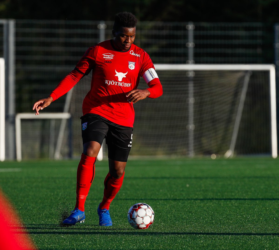 Þarna vantaði bara nokkra cm! Afturelding kemst í skyndisókn sem endar á skoti/sendingu hjá Andra. Hafliði er mættur á fjær og rétt missir af boltanum. Þarna mátti ekki miklu muna!