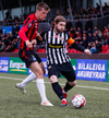Kennie Chophart reynir hér að taka hann á lofti með vinstri en skotið er langt framhjá.