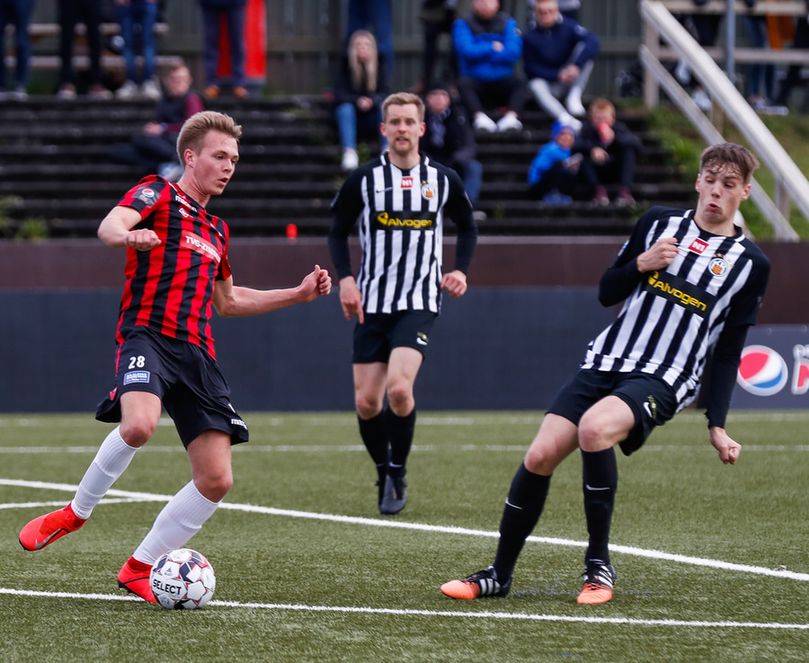 Atli með sendingu á Tobias sem að á skot sem að Þórður ver. Ægir Jarl er fyrstur að átta sig og nær boltanum, rennir honum á Tobias aftur en Logi Tómasson nær að verja skot hans á línu.