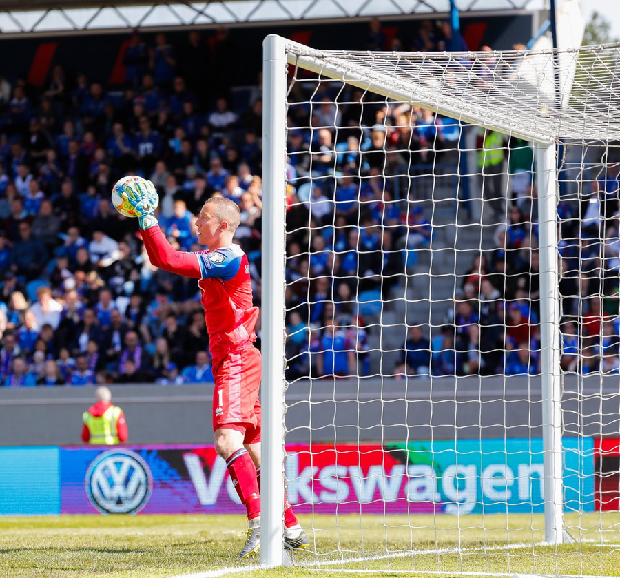 Ari Freyr með skemmtilega chippu inná Viðar Örn sem að er kominn í gegn en er falggaður rangstæður.