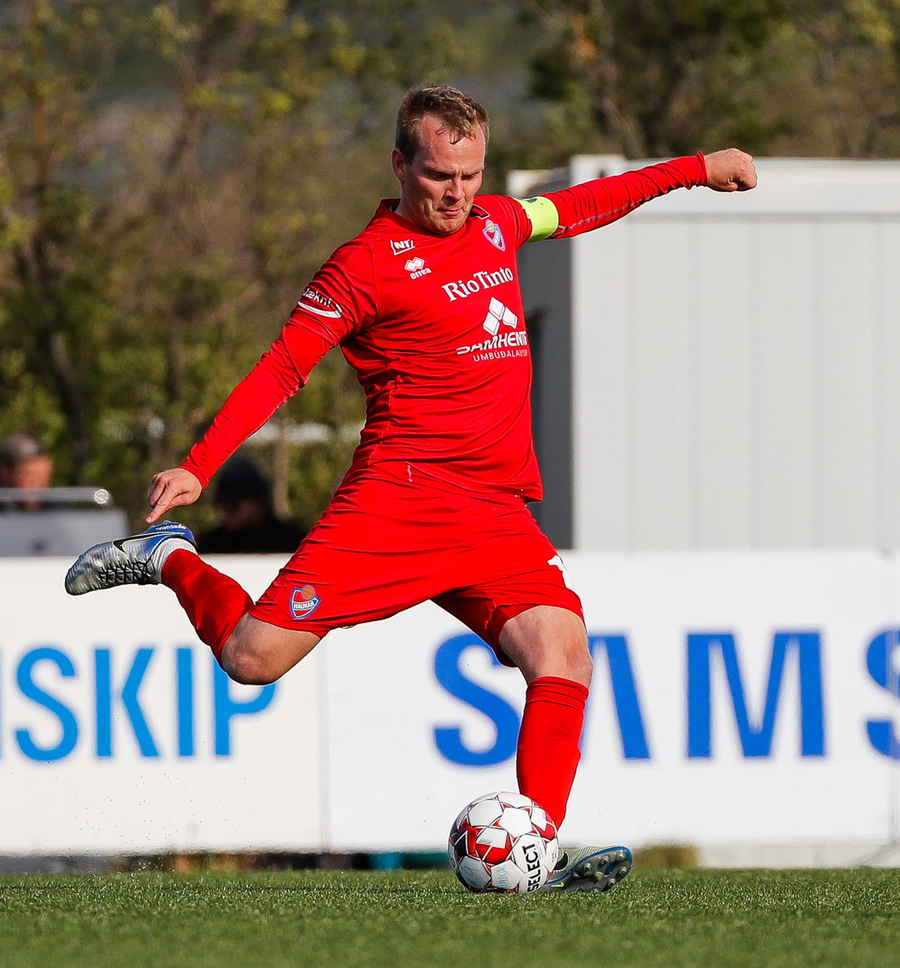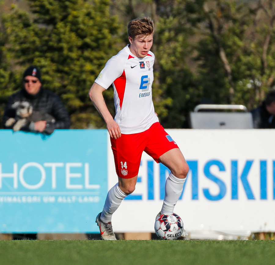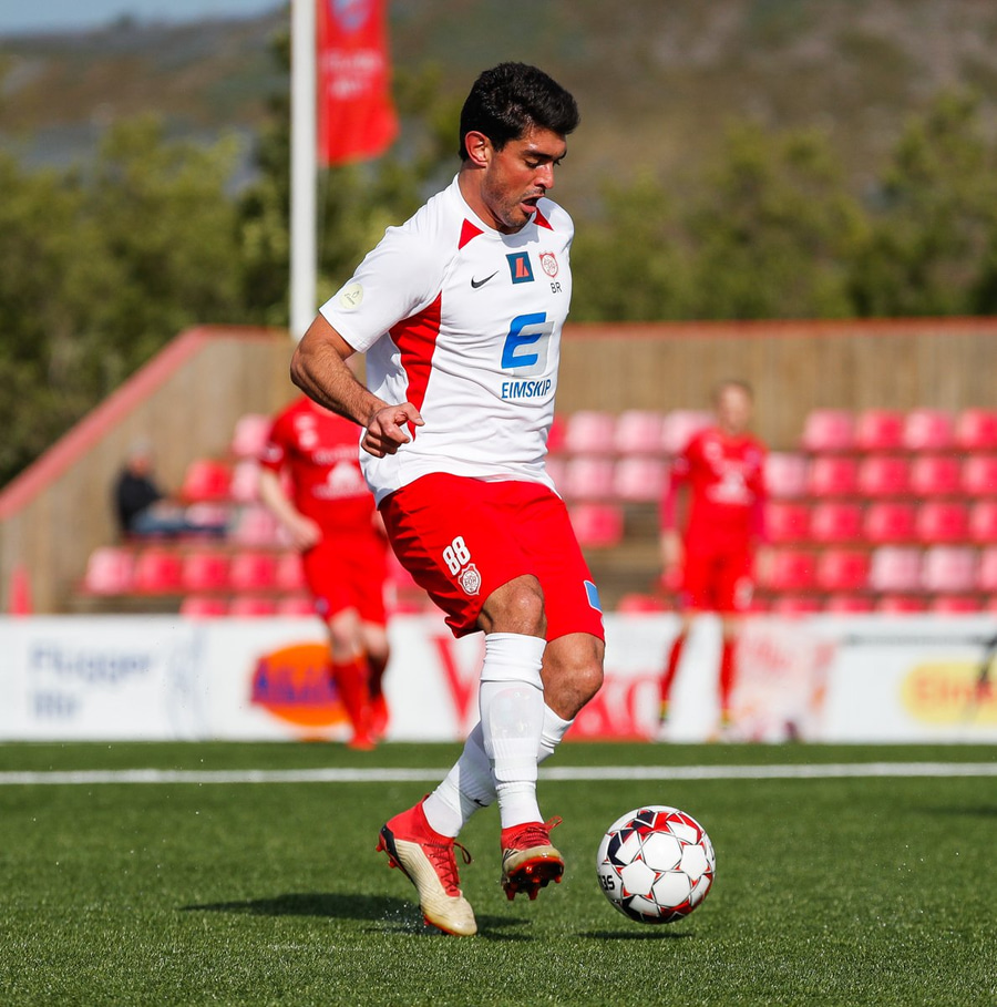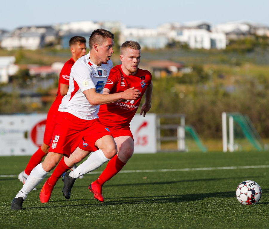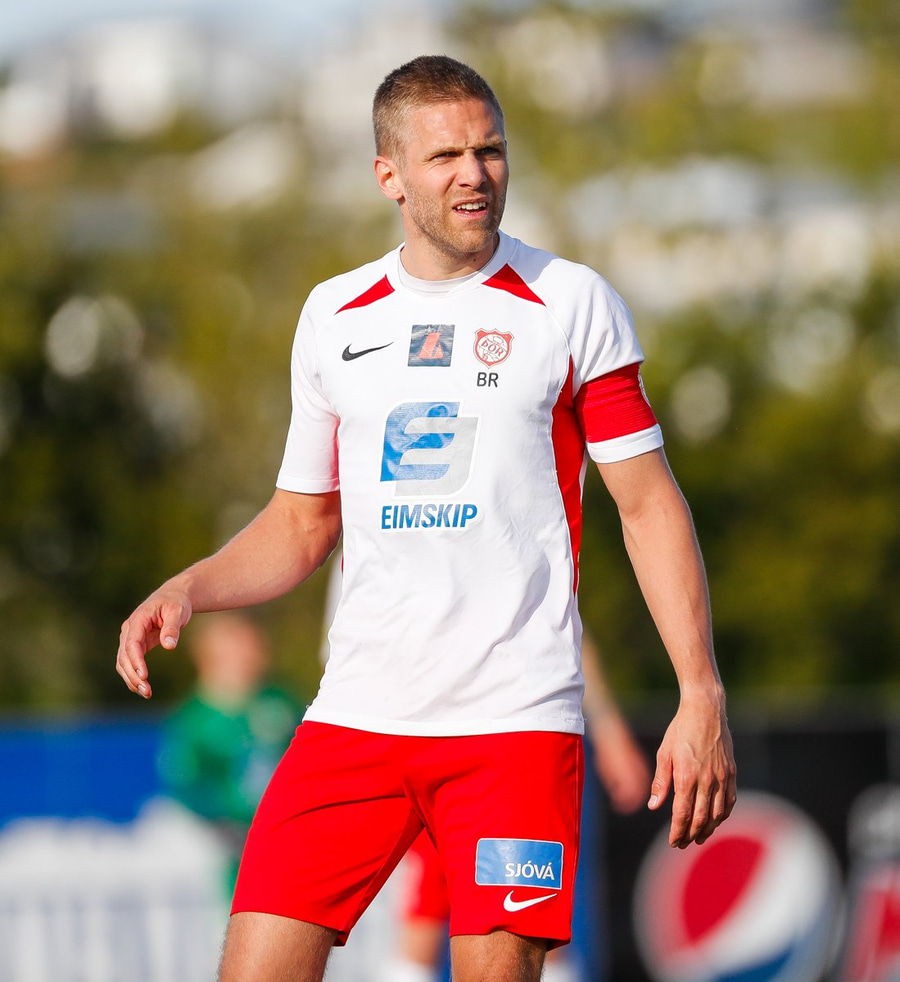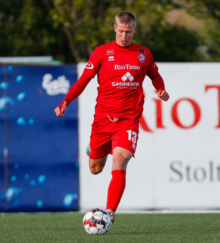 Ekki fyrsta grófa brot Hafþórs í leiknum, hárrétt gult spjald þegar hann brýtur á Alvaro á miðjunni þegar Alvaro er á leið í sókn.
