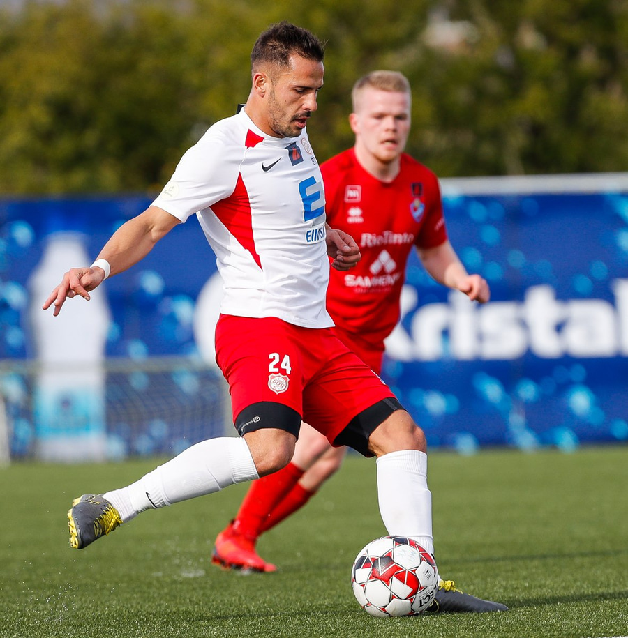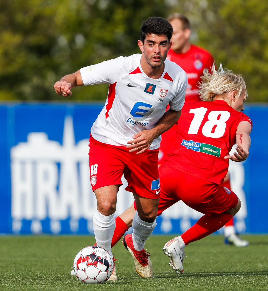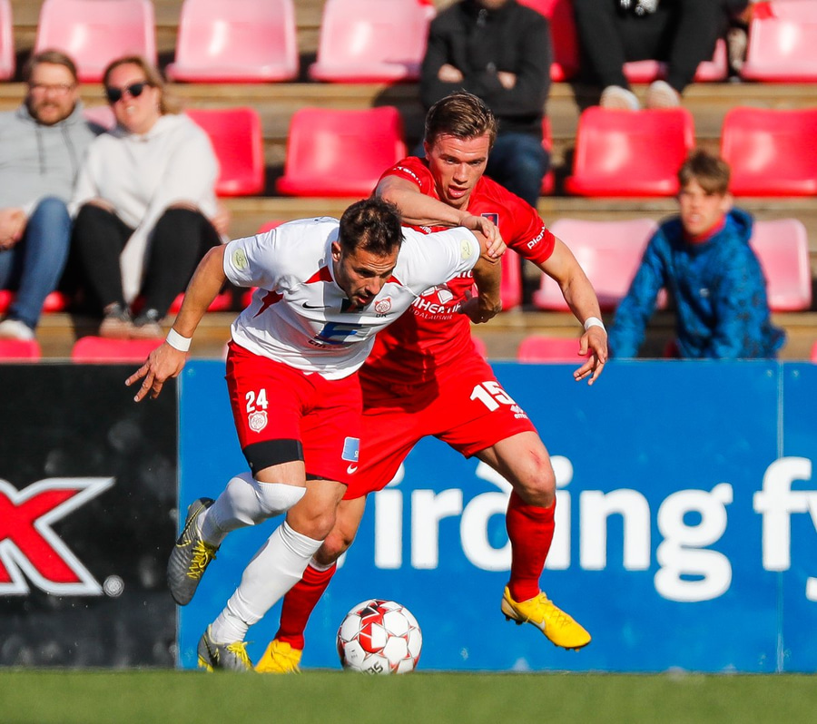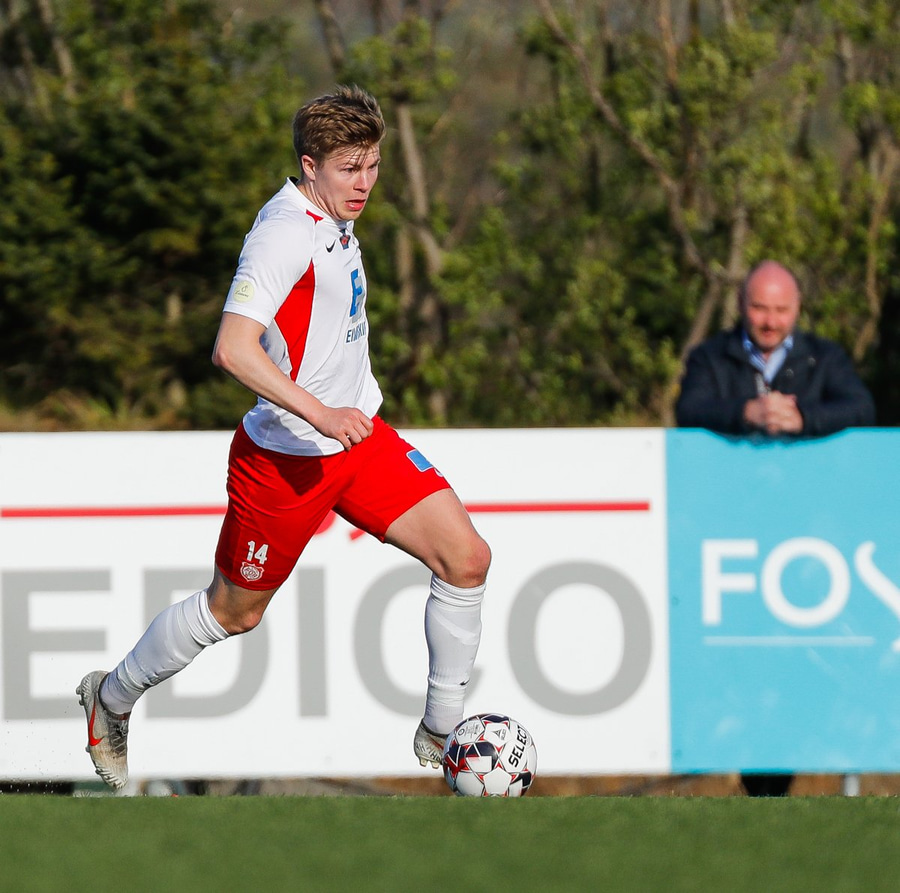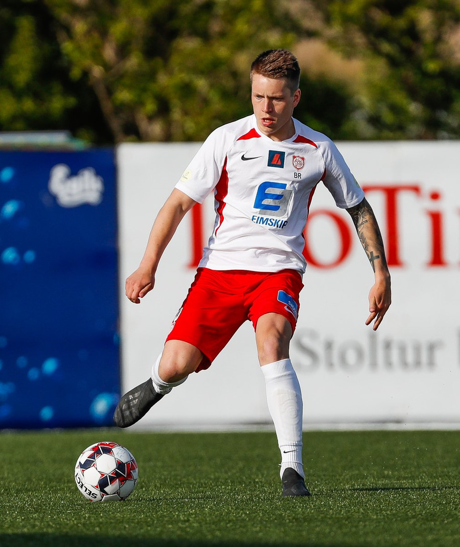 Ekki fyrsta grófa brot Hafþórs í leiknum, hárrétt gult spjald þegar hann brýtur á Alvaro á miðjunni þegar Alvaro er á leið í sókn.