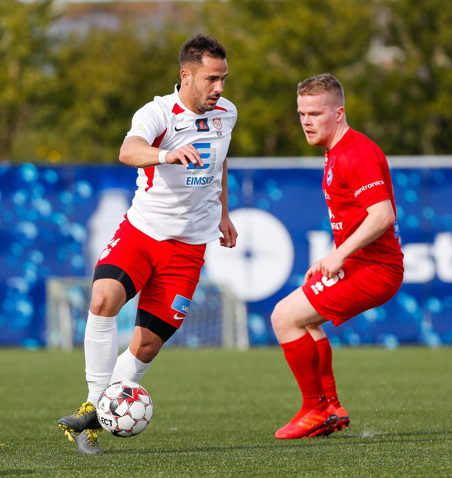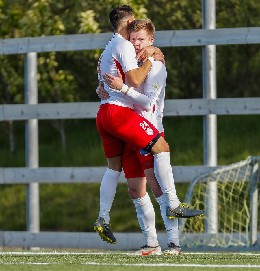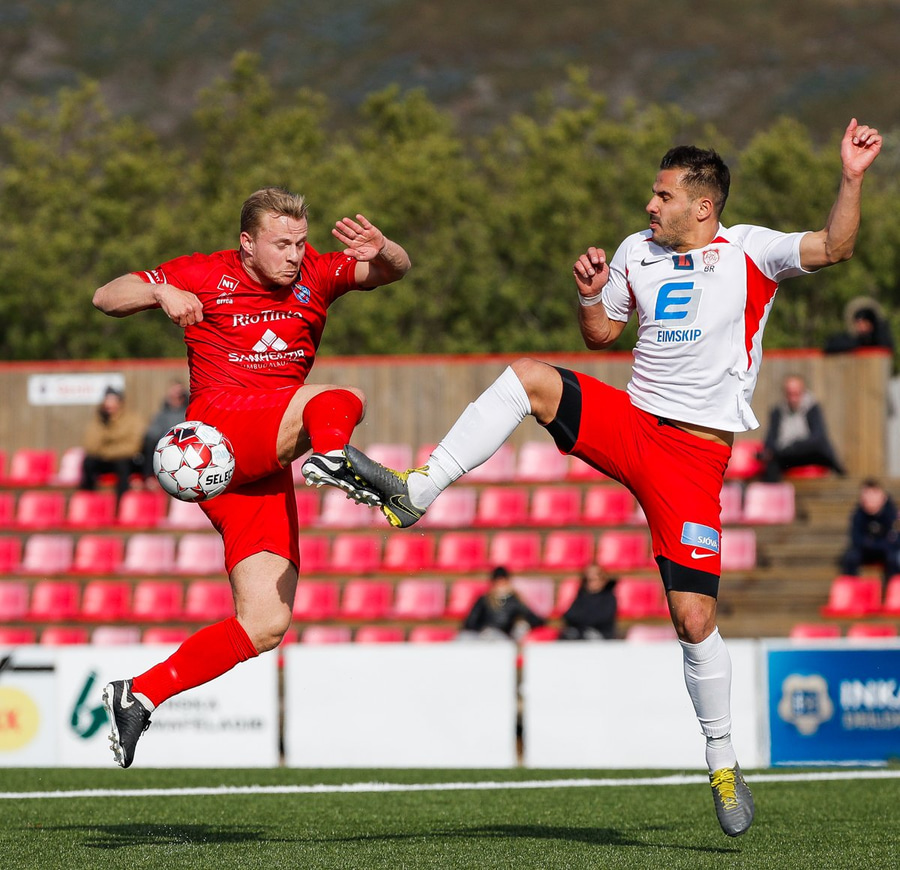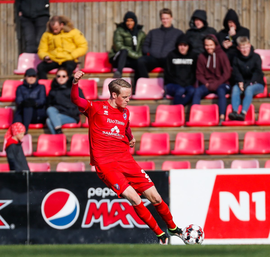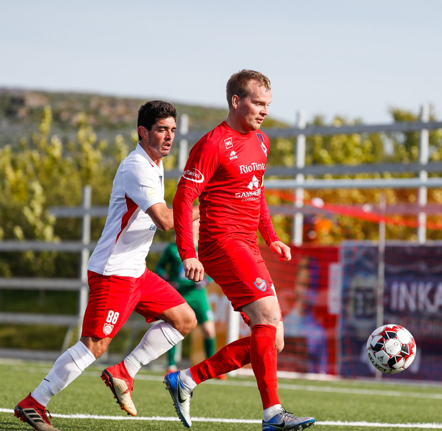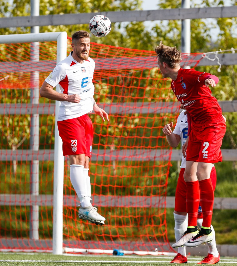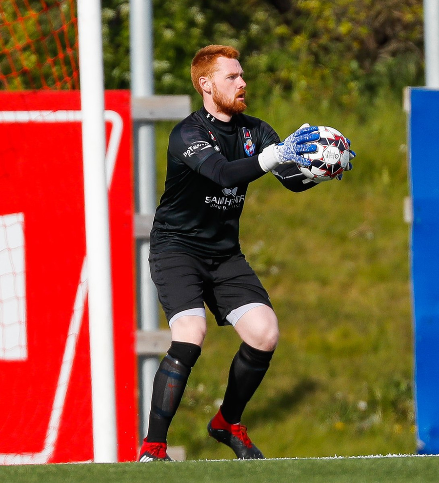 Skot frá Aroni Kristófer upp við endalínu sem endar í innkasti. Flott spil þarna á milli hans og Alvaro sem leiddi til skotsins sem var alltaf ólíklegt til að fara á markið.