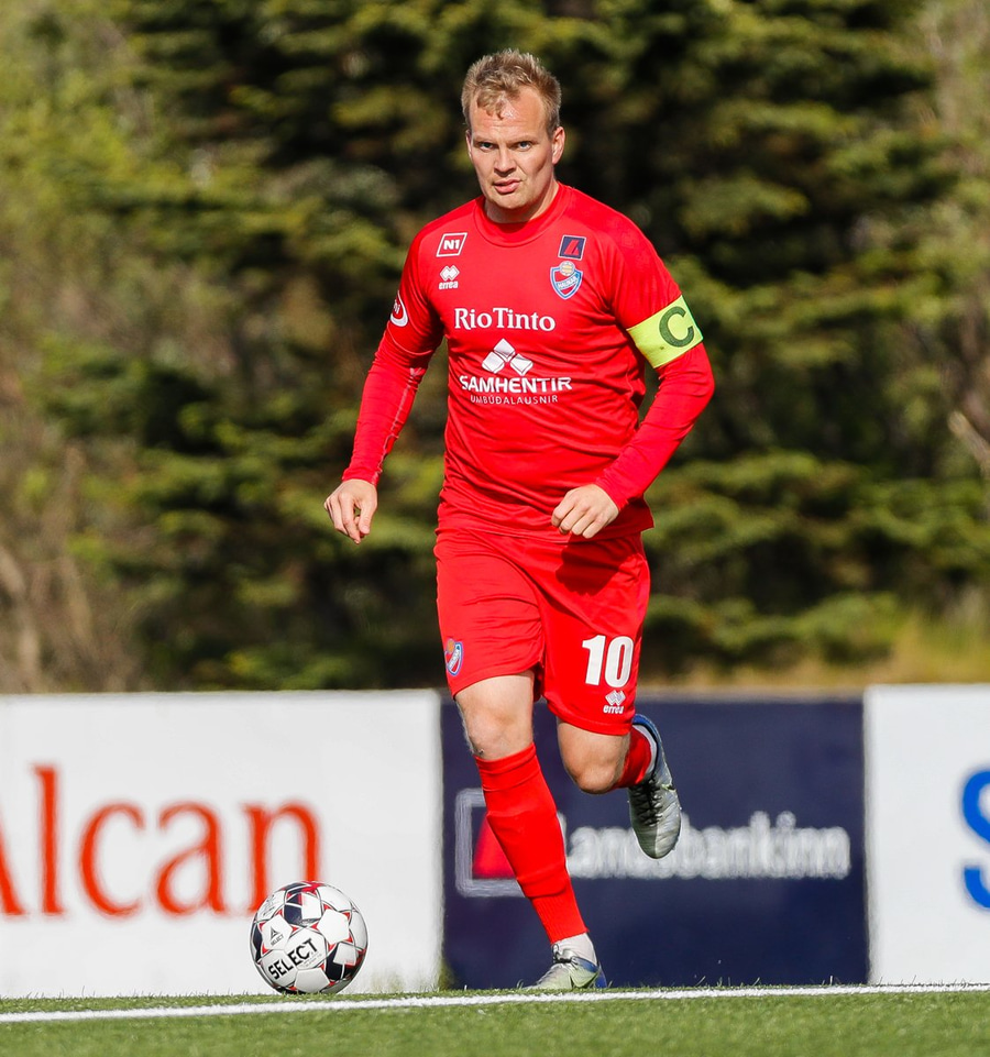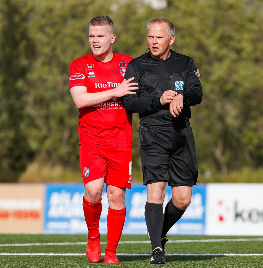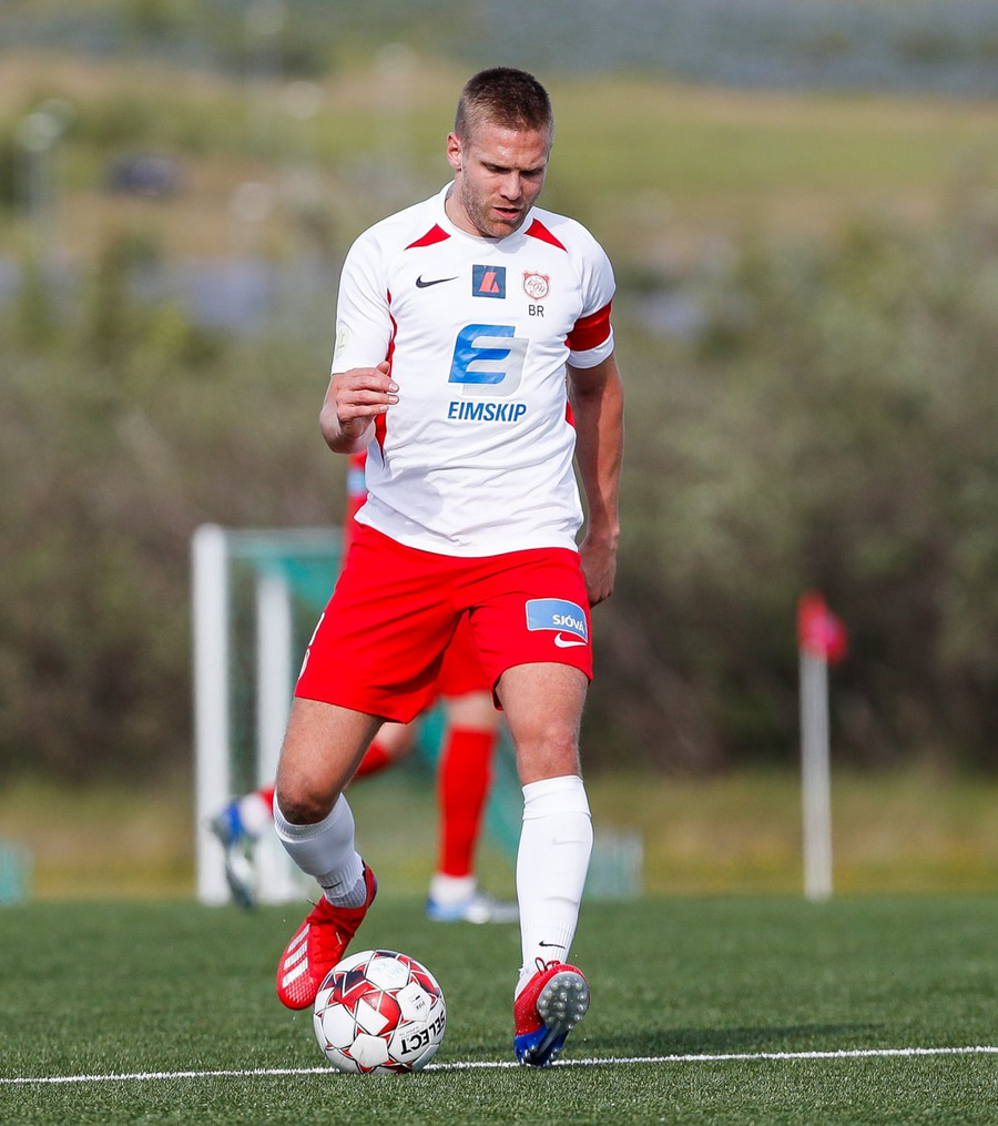 Brýtur á Þórsara og klappar svo fyrir Erlendi sem gefur honum gult spjald fyrir vikið.