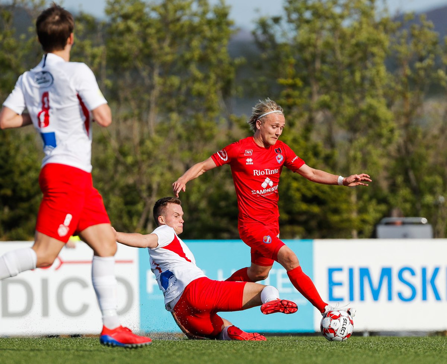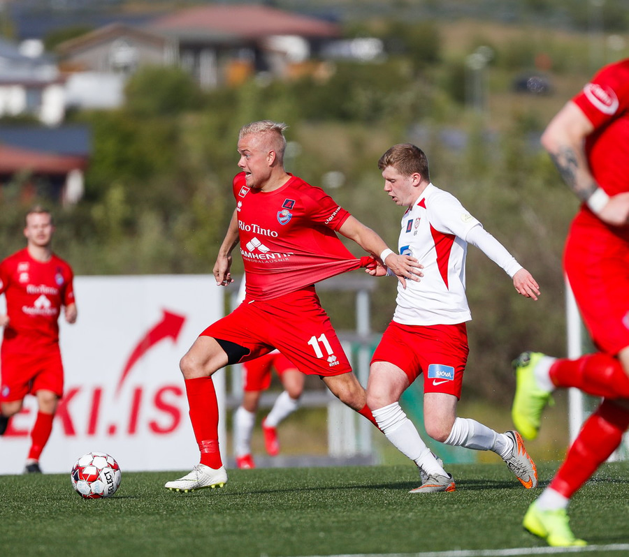 Aron Freyr með fína tilburði hér við hægra vítateigshorn Þórsara en skotið hans fer að lokum framhjá markinu, smá líf að færast yfir leikinn.