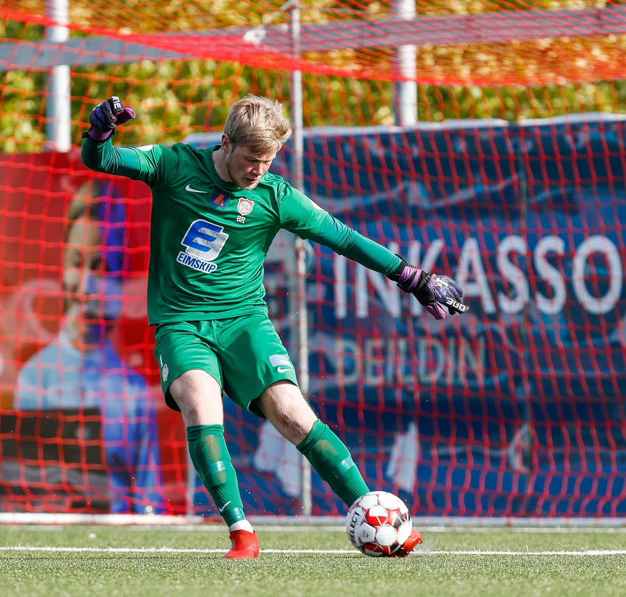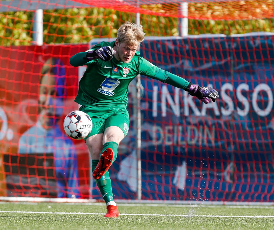 Aron Birkir með vel heppnað skógarúthlaup þar sem að hann nær að hreinsa boltanum og sparka honum lengst í burtu.