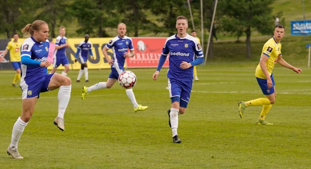 Elias Tamburini með góðan sprett sem að endar á skoti en Jajalo handsamar boltann auðveldlega.