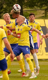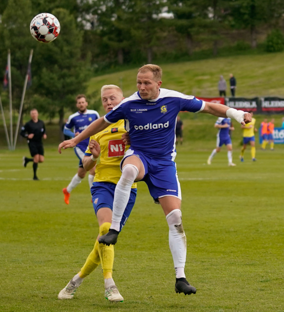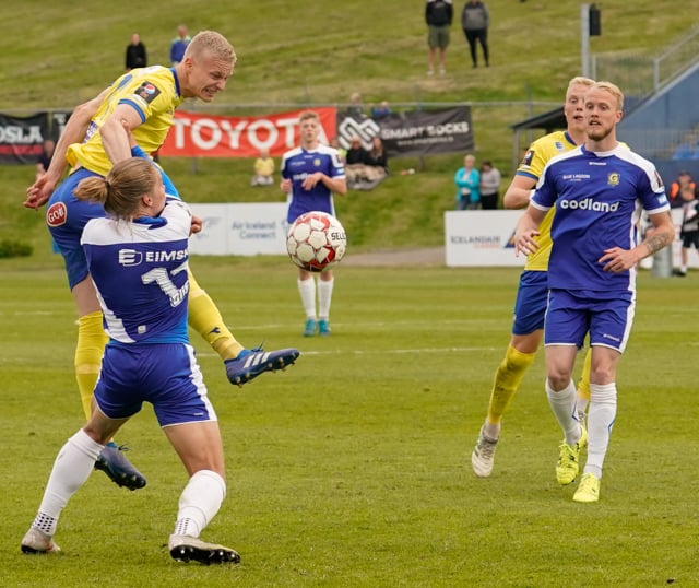Sigurjón Rúnarsson með fínan skalla eftir hornspyrnu Arons en boltinn fer yfir markið.