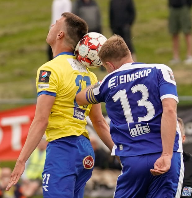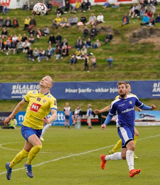 Alexander Groven með góða fyrirgjöf á Hallgrím Mar sem að skallar rétt framhjá. Minnsti maðurinn á vellinum stökk hæst.