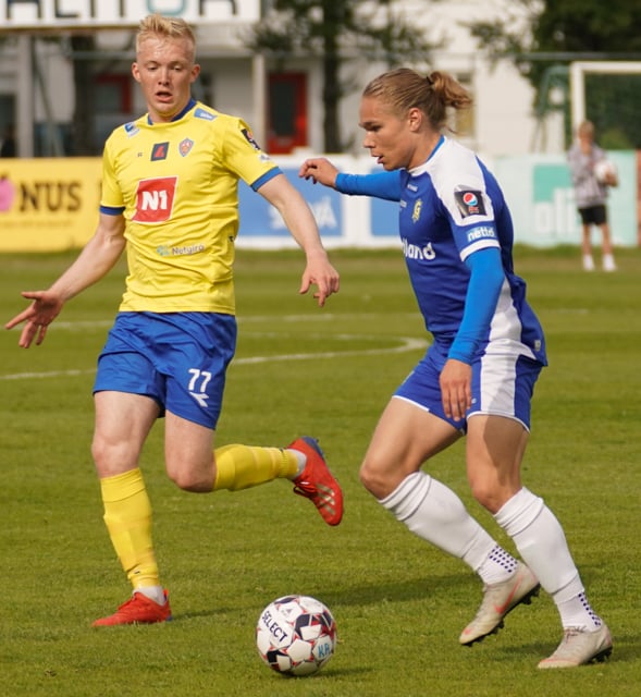 Nkoyi fer hér illa með Callum inná vítateig KA en Bretinn svarar fyrir sig og nær að komast fyrir skot hans sem að Jajalo grípur síðan aulveldlega.