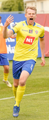 Gestirnir komnir yfir. Vá þetta var virkirlega vel gert hjá Guðmundi!! Sólar Callum upp úr skónum. Callum vissi ekki hvort hann var að koma eða fara og Guðmundur þakkar fyrir sig með að smella boltanum í fjærhornið! Laglegt!