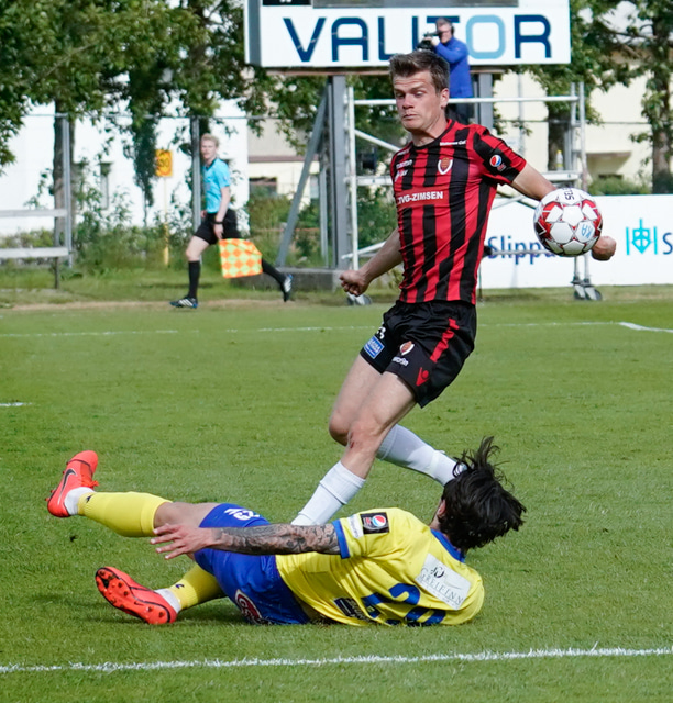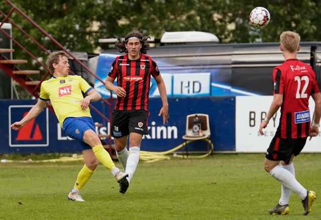 Hallgrímur nælir hér í aðra aukaspyrnu á góðum stað. Drengur er afskaplega lipur með boltann.