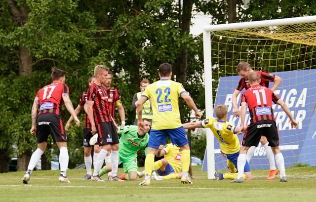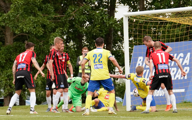 Ágúst Eðvald með góðan bolta á fjærstöngina þar sem Atli Hrafn var mætur en Jajalo öruggur í sínu úthlaupi og handsamar boltann.