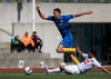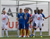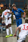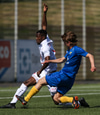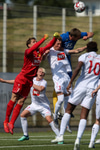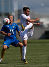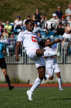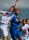 Capay kemst einn í gegn en missir hann aðeins of langt frá sér og fer illa með færið