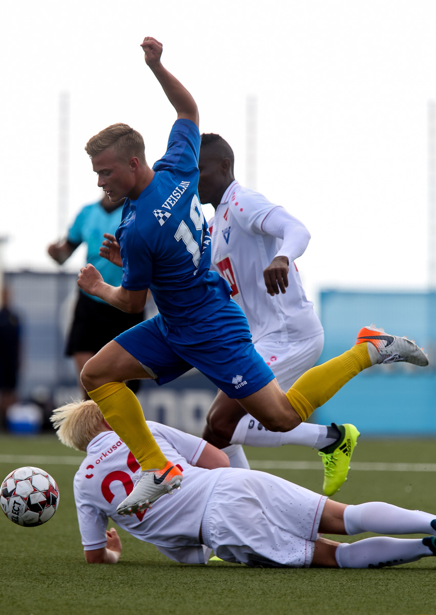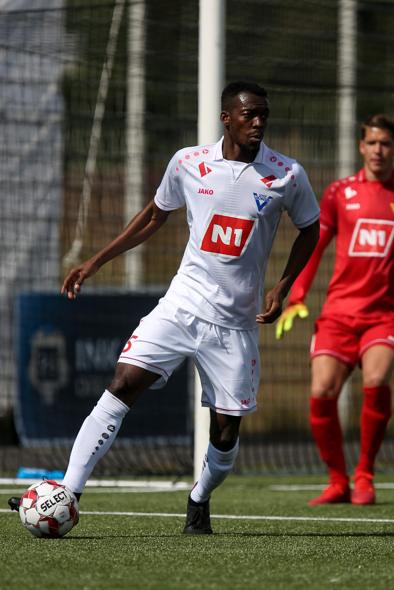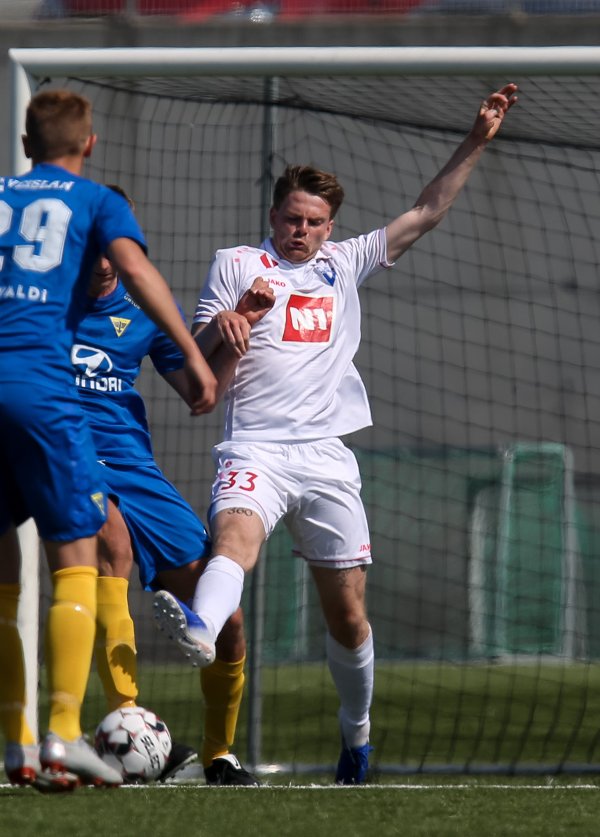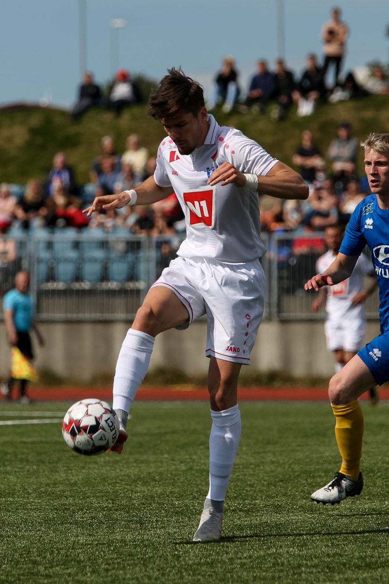 Vidmar Miha kemst upp að endamörkum, leggur hann út í teiginn á Sallieu Capay en Arnar Þór kemst fyrir.