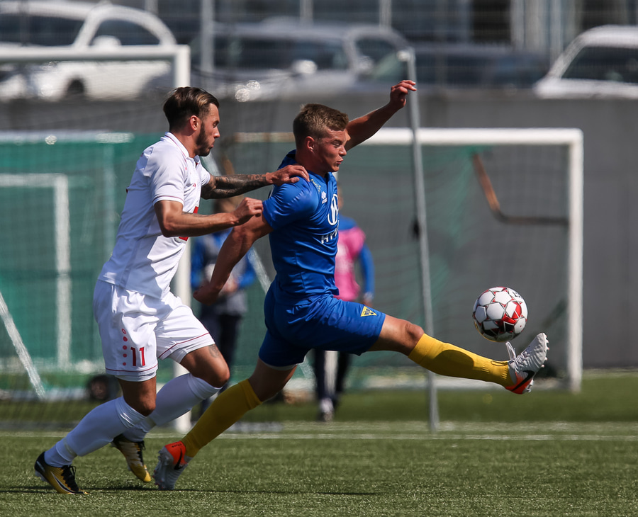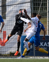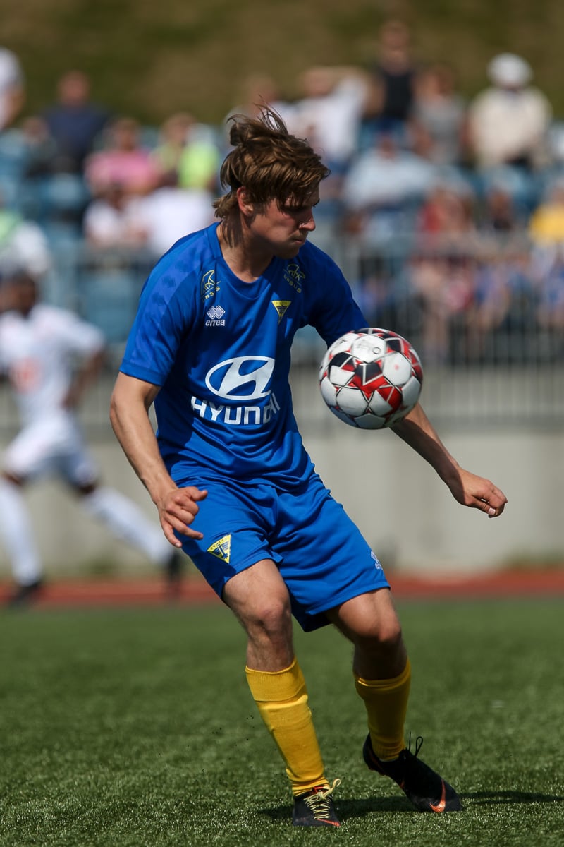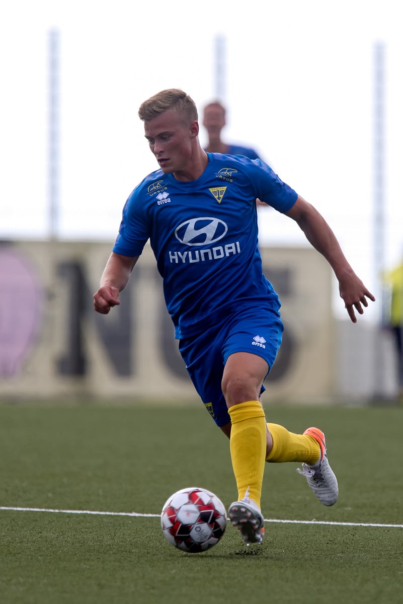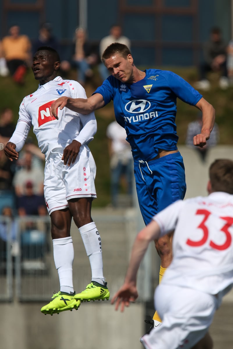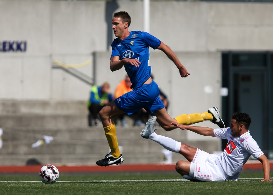 Vidmar Miha kemst upp að endamörkum, leggur hann út í teiginn á Sallieu Capay en Arnar Þór kemst fyrir.
