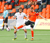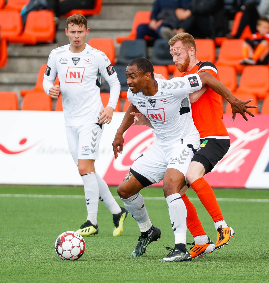 ÍBV ná að skella sér í skyndisókn og Franks ekki langt frá því að hirða sendingu frá Coelho.