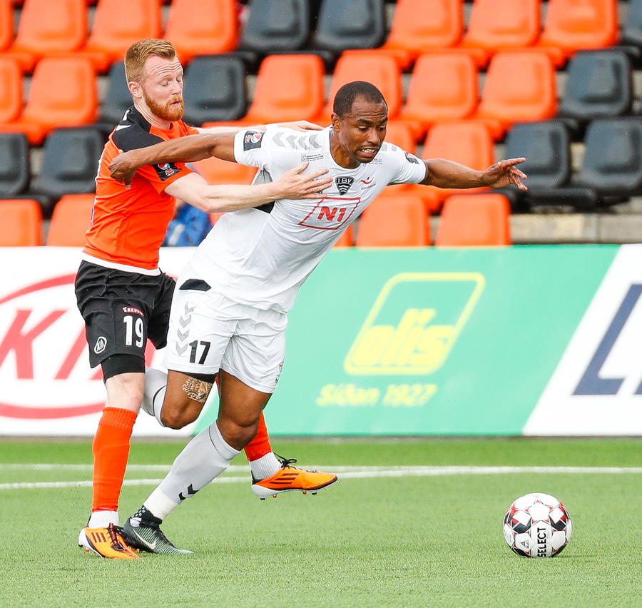 Valdimar sleppur hér í gegn eftir sendingu frá Castillion en skaut langt framhjá.