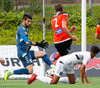 Fyrsta snerting Prah er skot úr teignum eftir geggjaðan undirbúning sem lauk með gullsendingu í gegnum vörnina á Benjamín sem er aleinn í gegn. Stefán stendur og stendur og ver að lokum með höfðinu.