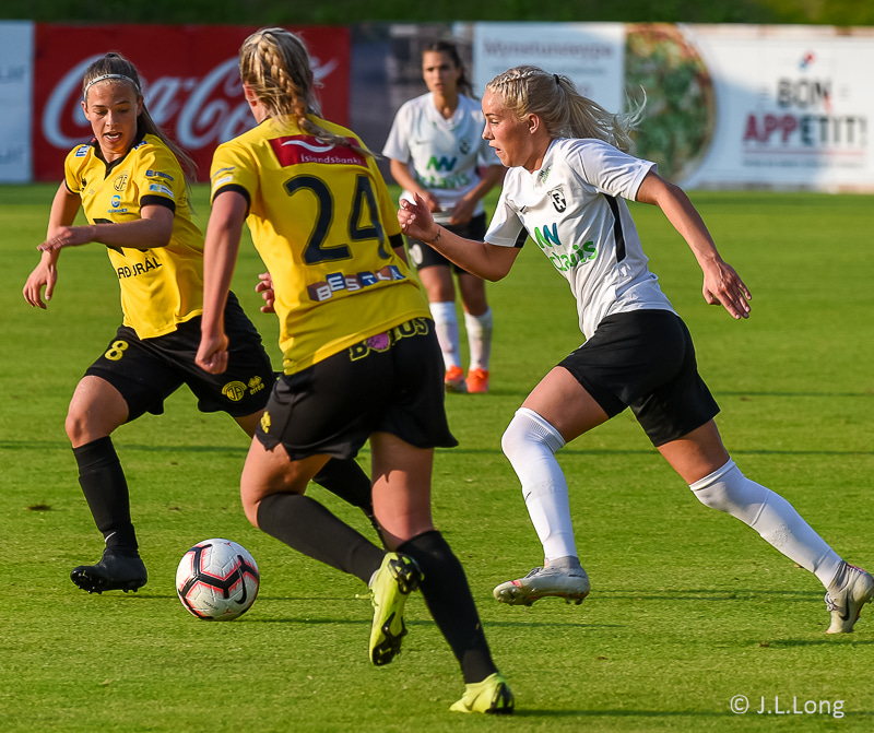 ÍA stelpurnar leyfa FH að spila boltanum á milli sín og byrja ekki að pressa þær fyrr en þær mæta upp á miðju. Þetta gerir spilið hjá FH stelpum mun erfiðara