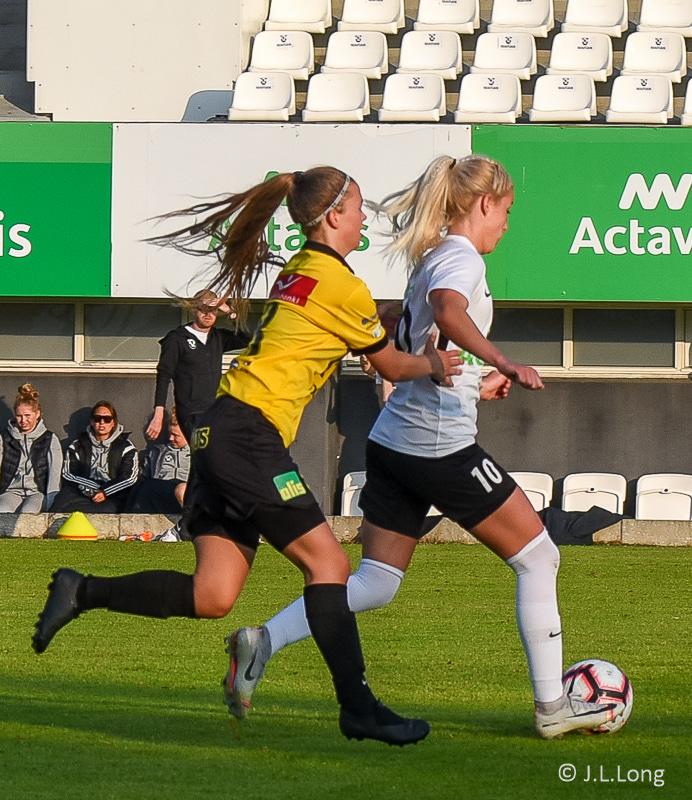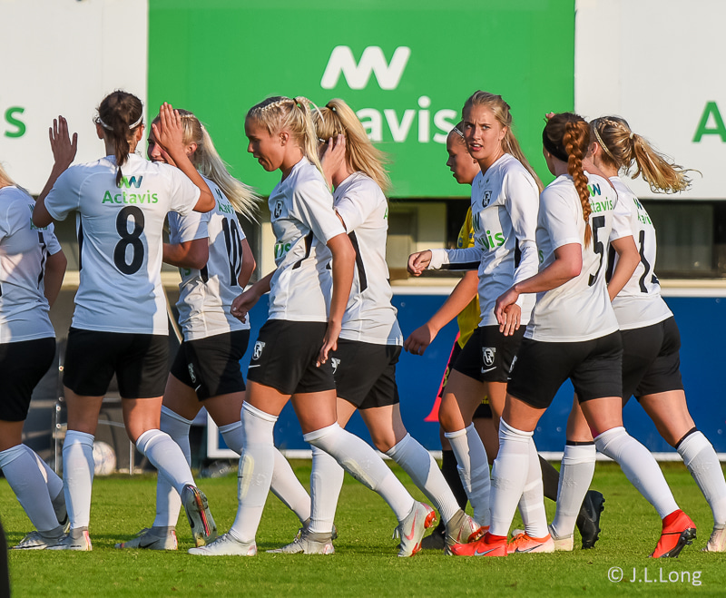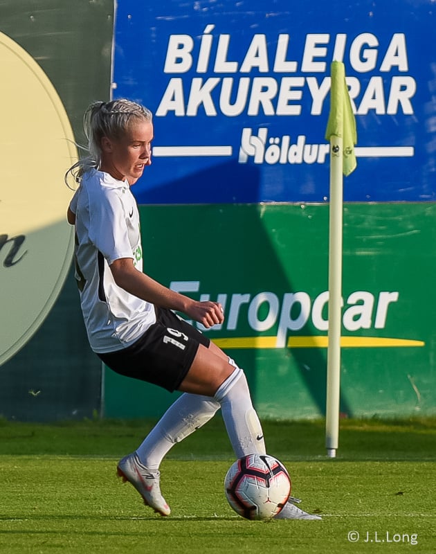 Nú eru Skagakonur farnar að færa sig ofar á völlinn þar sem þær þurfa að skora mark ef þær vilja fá estig úr leiknum