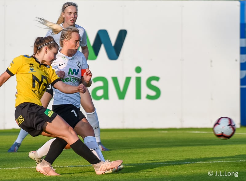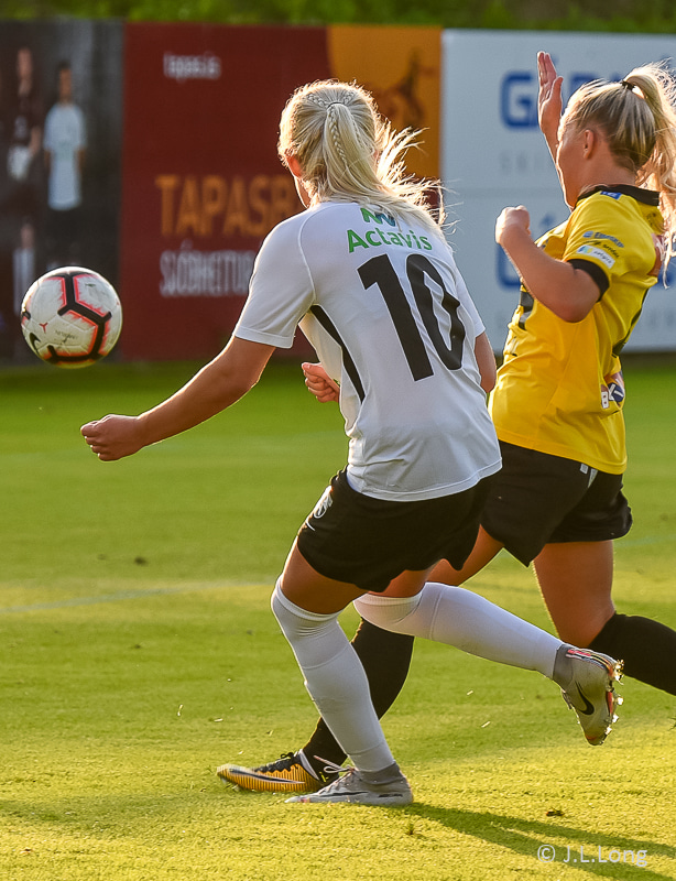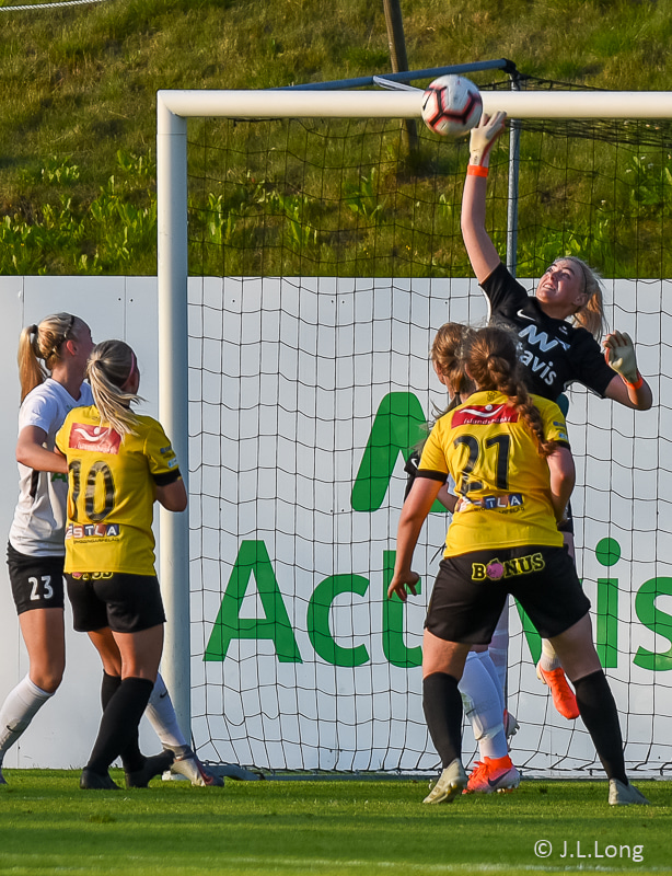 Lofandi sókn hjá Skagakonum en Maggý stendur eins og klettur í vörninnu. Þær reyna að koma boltanum tvisvar framhjá henni en það tekst í hvorugt sskipti