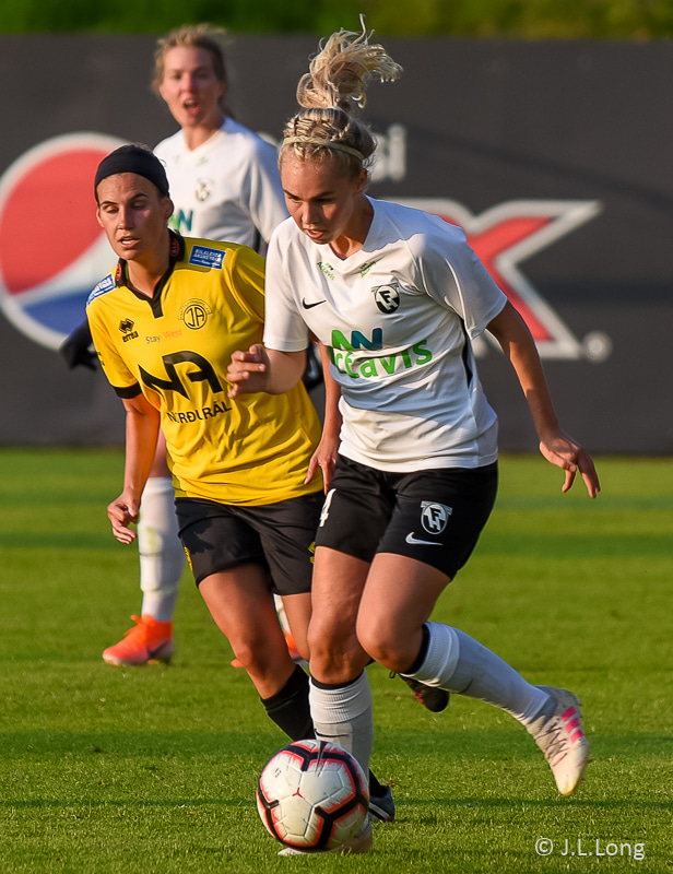 FH kemst upp hægri kanntinn og á Selma Dögg frábæra fyrirgjöf sem ratar beint á kollinn á Nótt en skallinn frá henni fer yfir markið