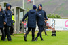 Rúmlega 5 mínútur í leik og liðin að gera sig klár í að ganga til vallar.  Vonandi að við fáum fjörugan leik og skemmtilegan.