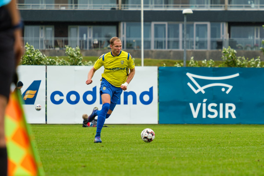 Sigurjón Rúnars með fyrirgjöf eftir ágætlega uppbygða sókn en engin mættur á endan á henni.