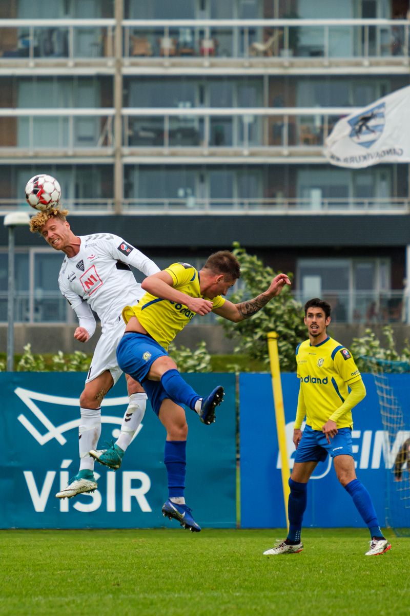 Grindavík fékk horn. McAusland átti hörkuskalla í eyjamann og slánna og niður. Primo fyrstur að átta sig og skóflar boltanum yfir línunna úr þröngu færi.