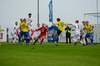 Primo leggur boltann fyrir Tufa sem á slakt skot úr teignum beint á Halldór.