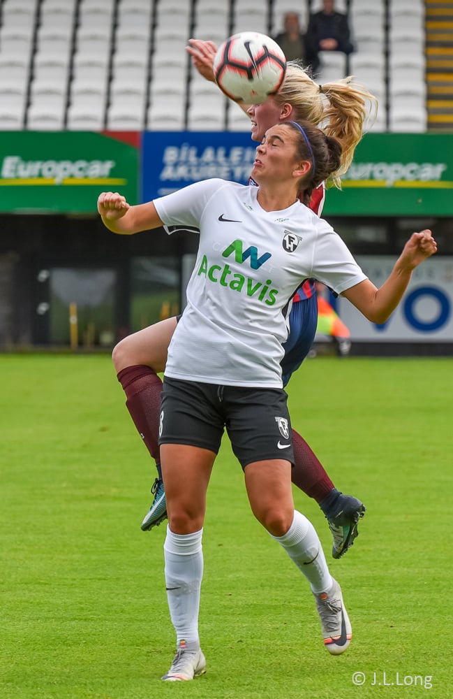 Jacqueline tekur spyrnuna en FH fær markspyrnu.