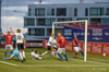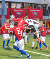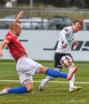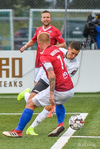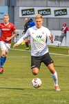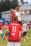 Haukur Páll fær hér neglu frá Davíð Þór beint í andlitið og svoleiðis limpast í jörðina. Leit út eins og að hann hafi rotast héðan úr blaðamannastúkunni en hann er staðinn upp og ætlar að halda leik áfram. Leit verr út en þetta var.
