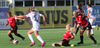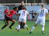 Eva Rut reynir skot fyrir HK/Víking á langt fyrir utan teig og er skotið svo slakt að það fer í innkast svona 10 metrum frá hornfánanum