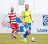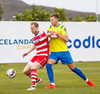 Gunnar Þorsteinsson í færi en skotið í jörðina og niður eftir fyrirgjöf frá Marinó.