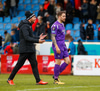 Diego Diz sparkar Ásgeir Börk niður af krafti og lendir svo ofan á honum. Börkurinn glottir bara.
